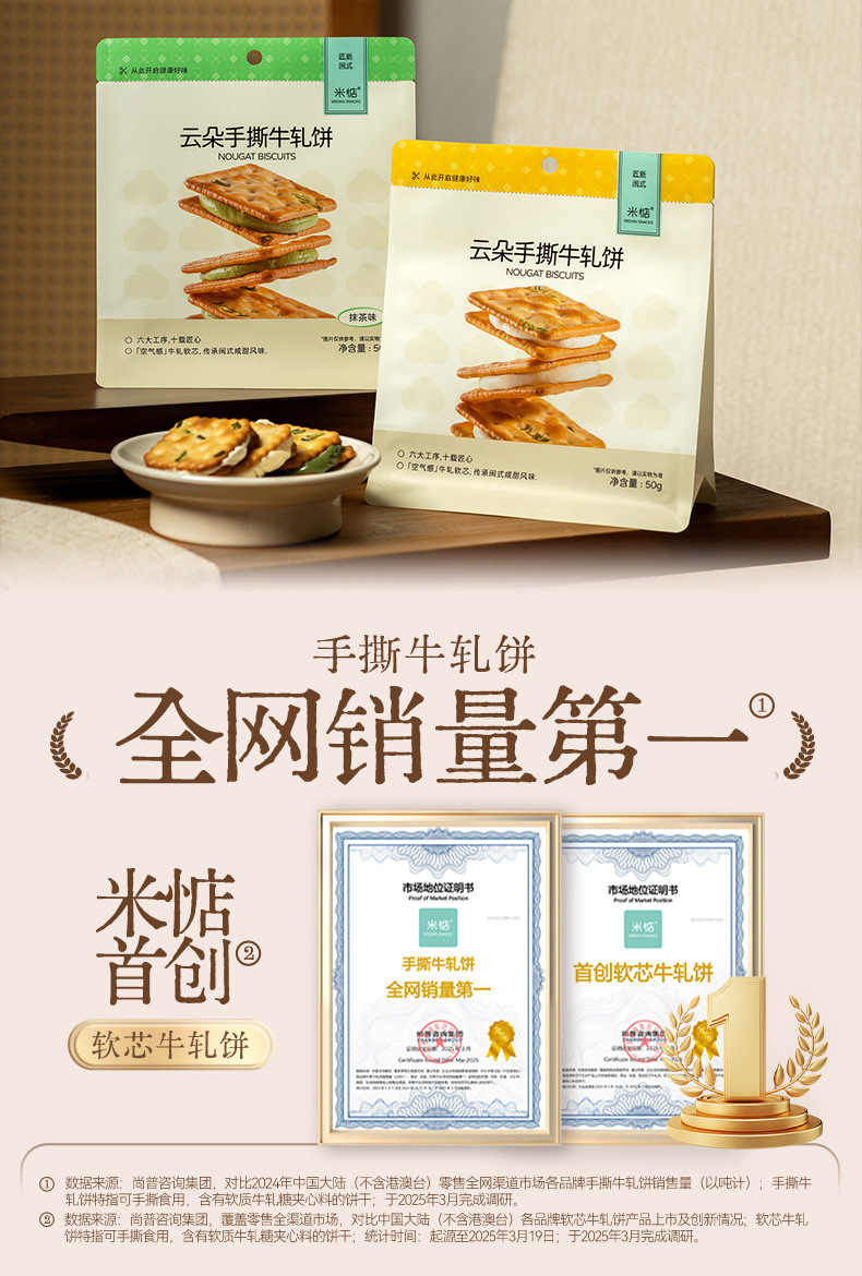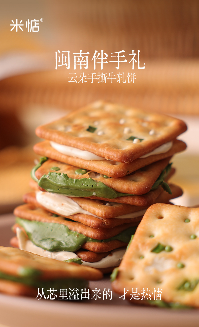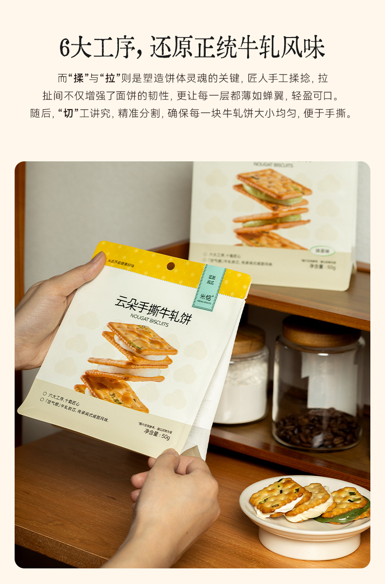 【坚持手工熬糖❗️6大工序还原风味】米惦云朵手撕牛轧饼香葱抹茶夹心饼干古早手工食品独立包装零食。jc