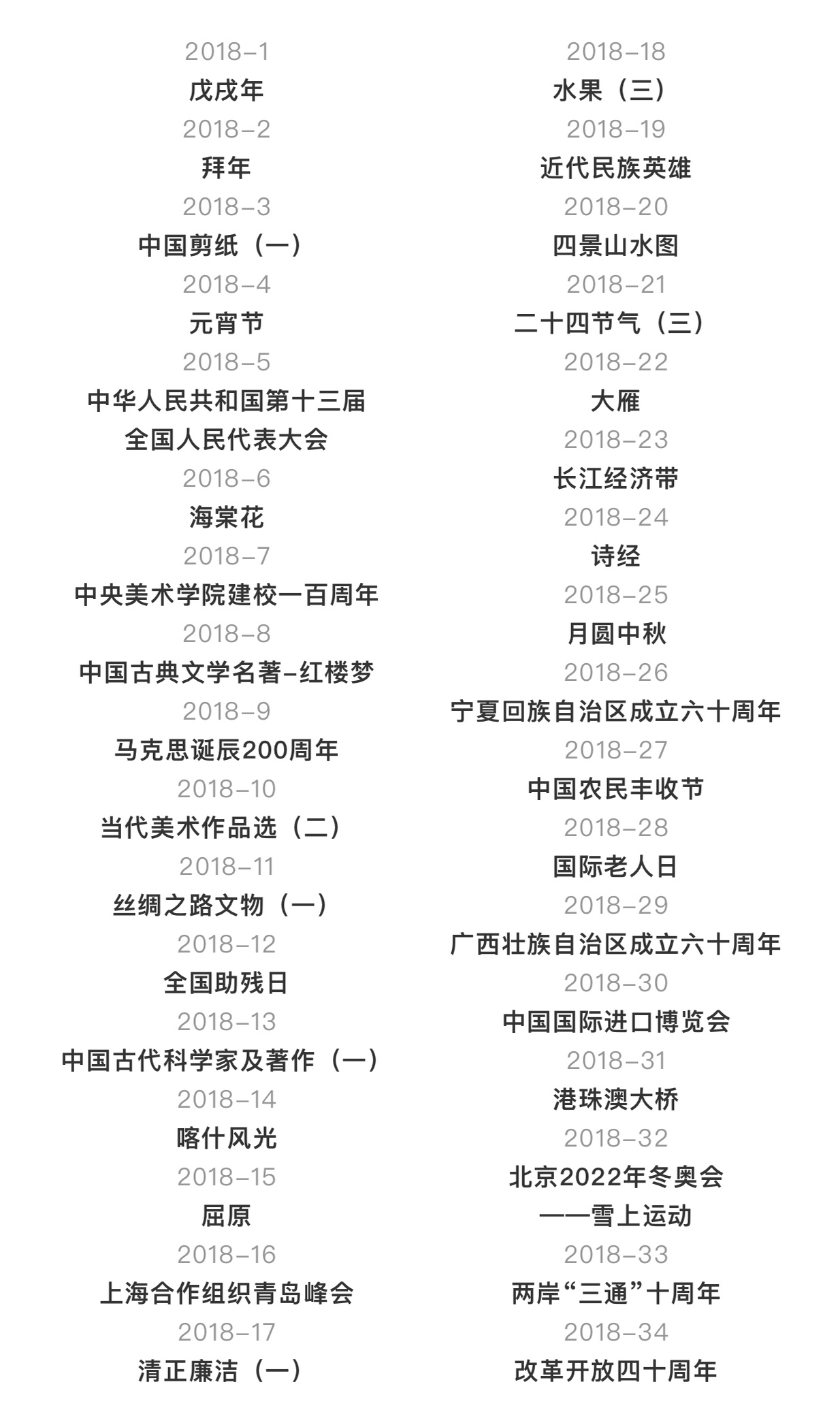 包括2018年发行过的所有邮票