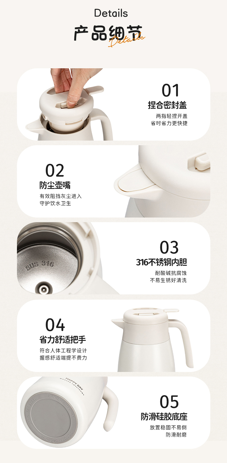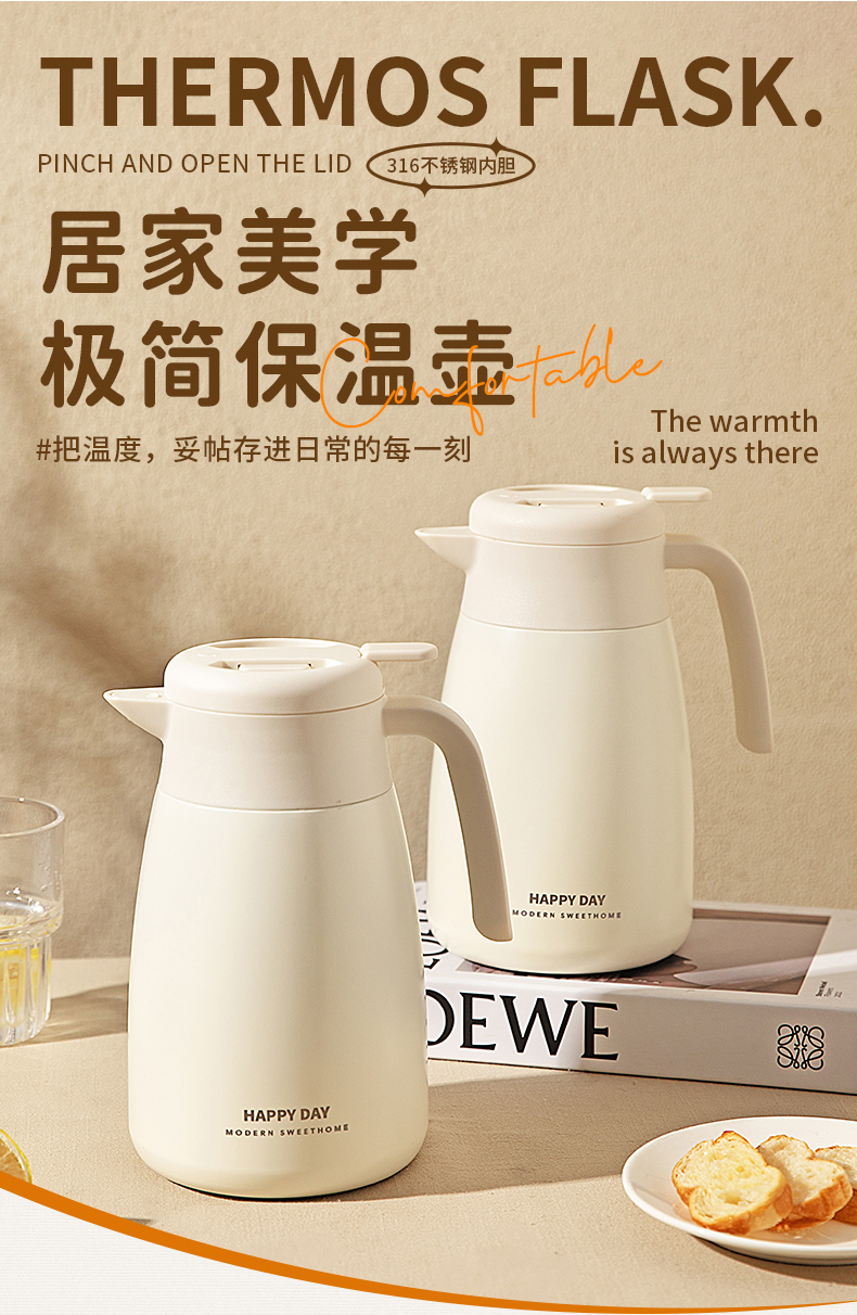 摩登主妇保温壶大容量2025新款家用宿舍不锈钢热水瓶暖水壶焖茶壶