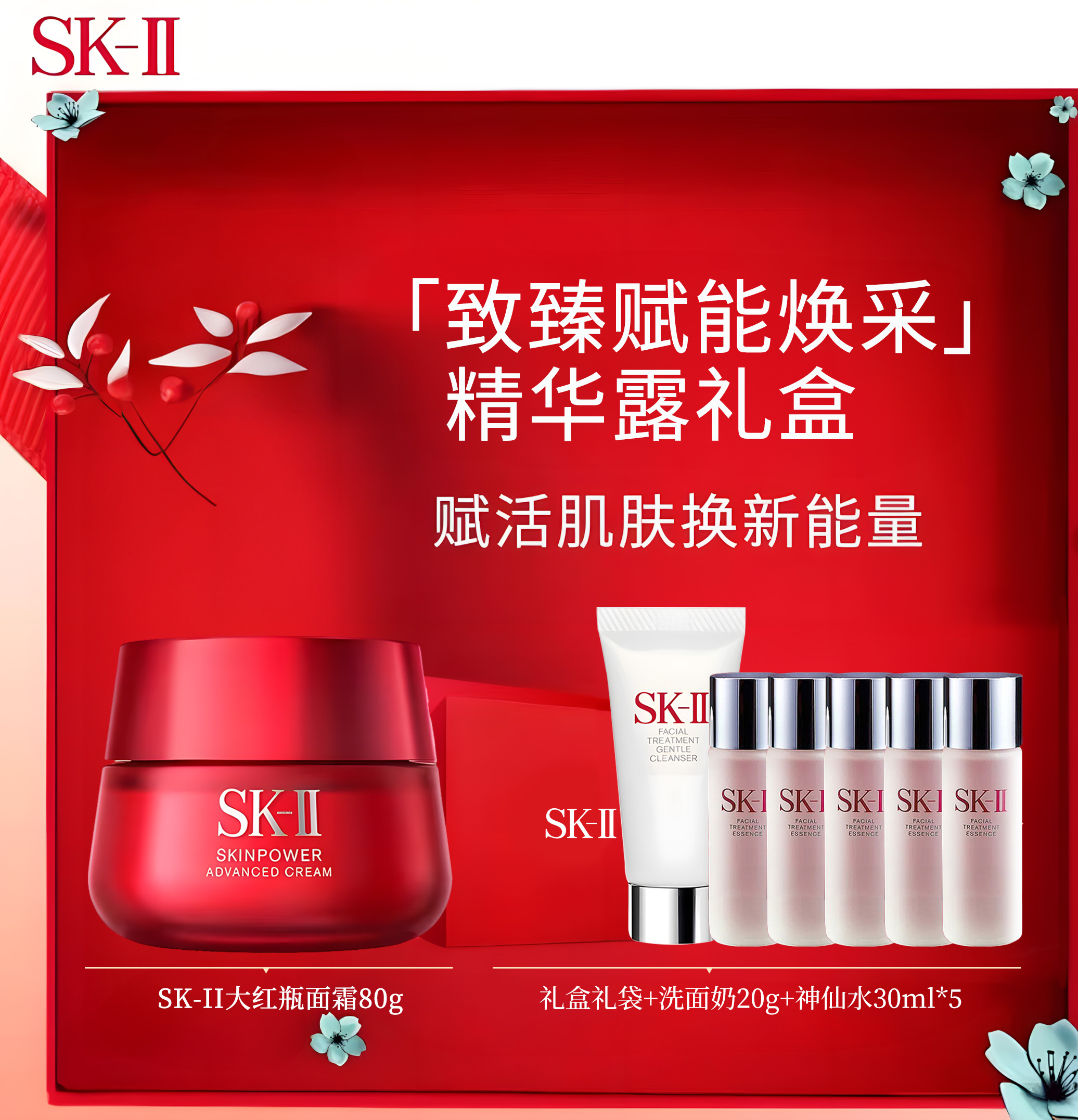 SKII/SK-II 大红瓶面霜80g(滋润/清爽)+清莹露30ml*5+洁面乳20g*1+礼盒款