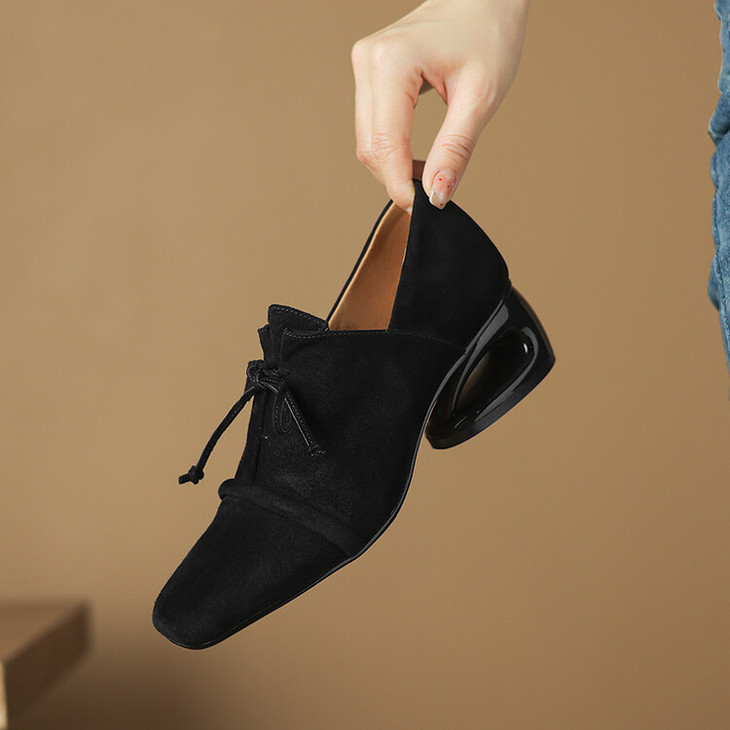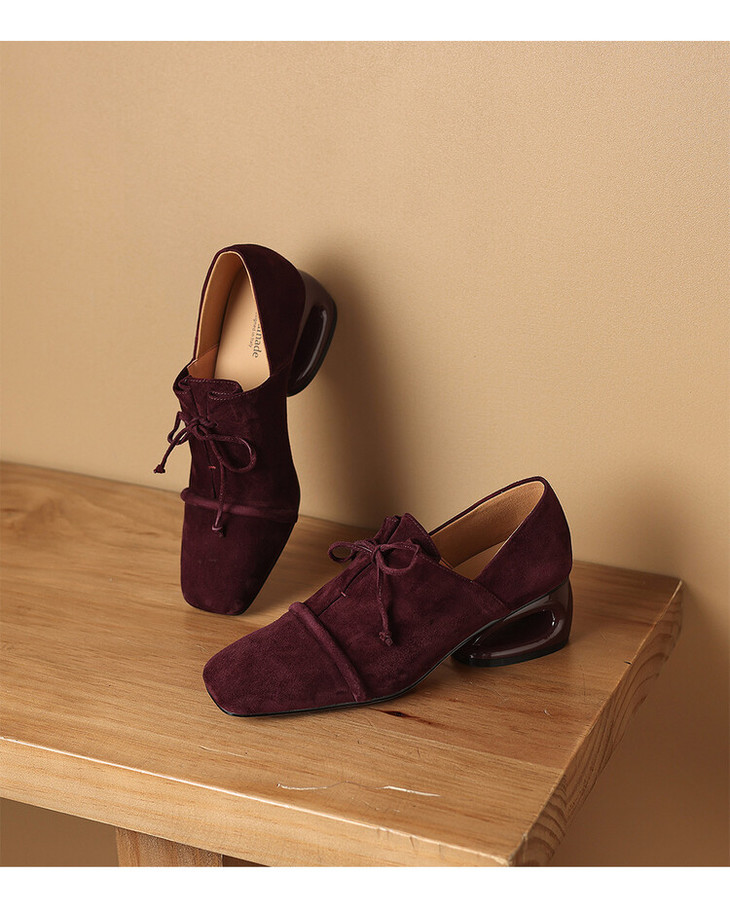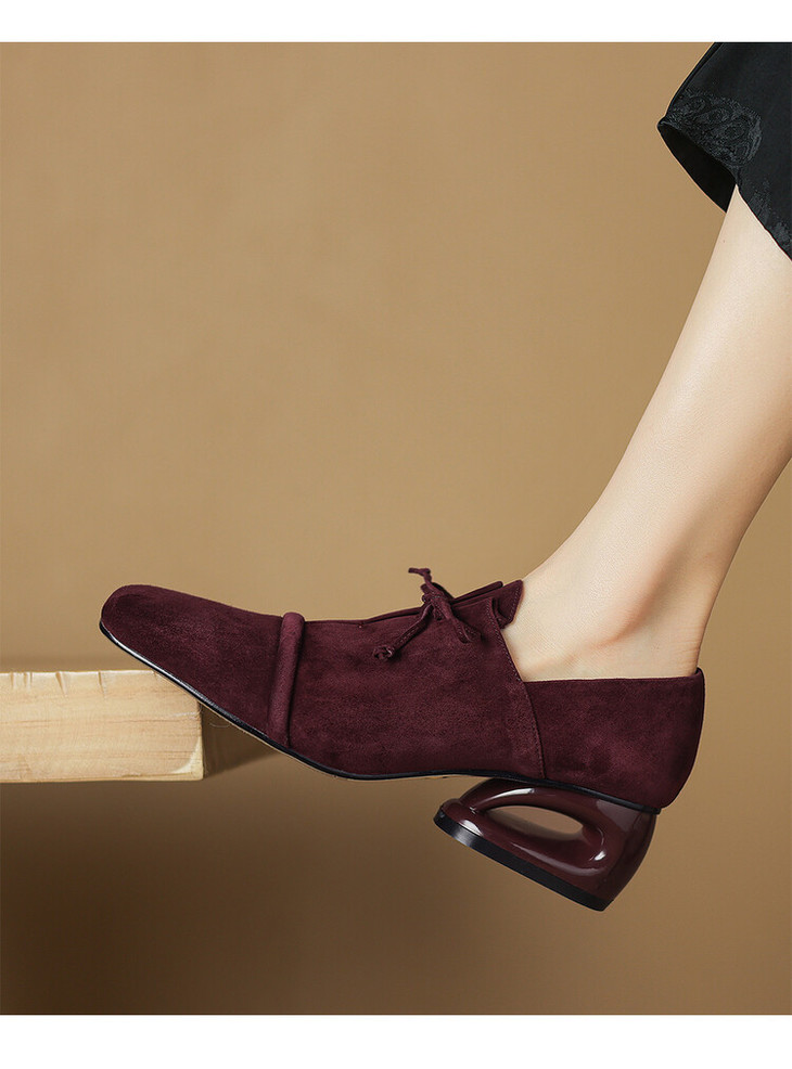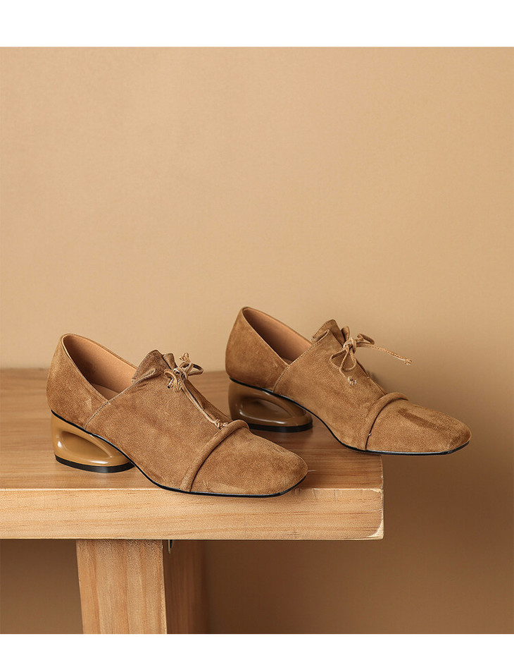 【预售5天】美拉德羊反绒时装鞋女方头时尚系带粗跟深口单鞋LD&6932
