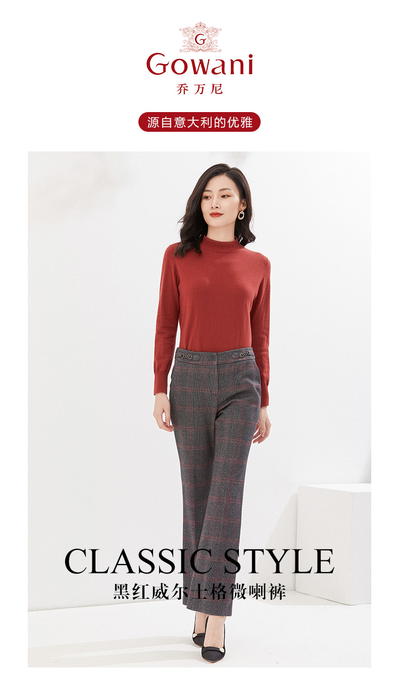 乔万尼休闲长裤磨毛弹力经典微喇长裤百搭EI4F510