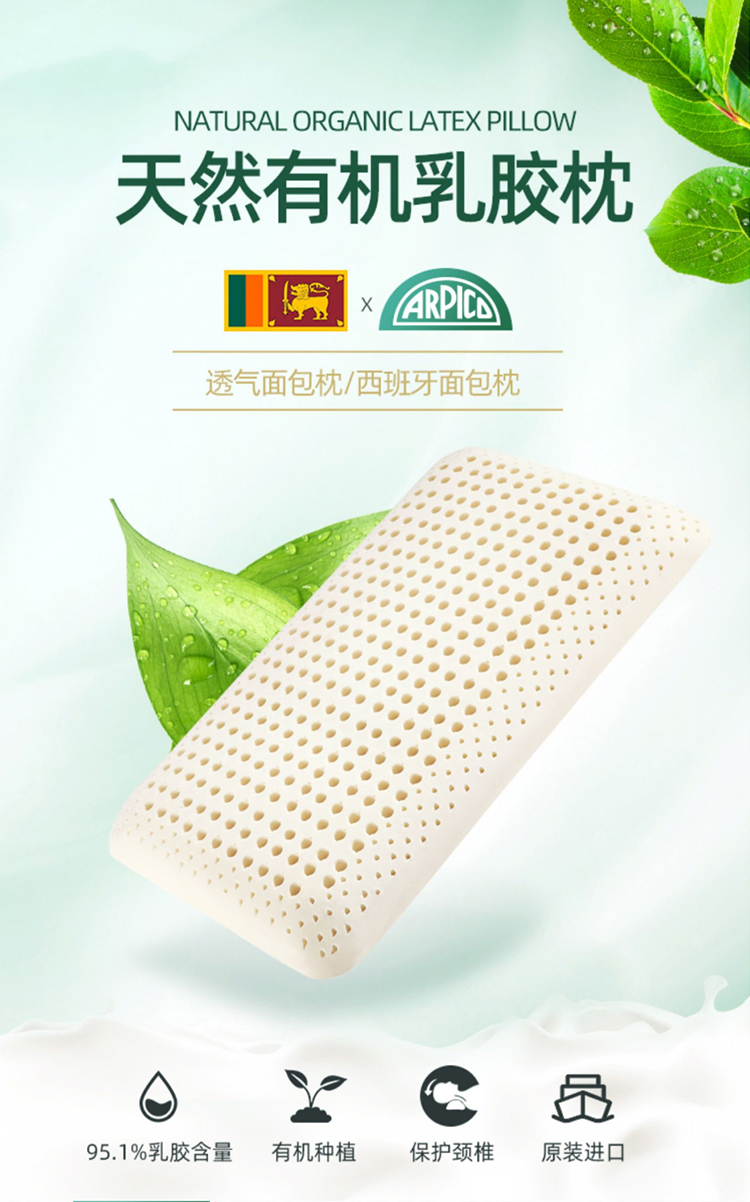 ARPICO斯里兰卡半面包枕乳胶枕头(60*40*6cm)