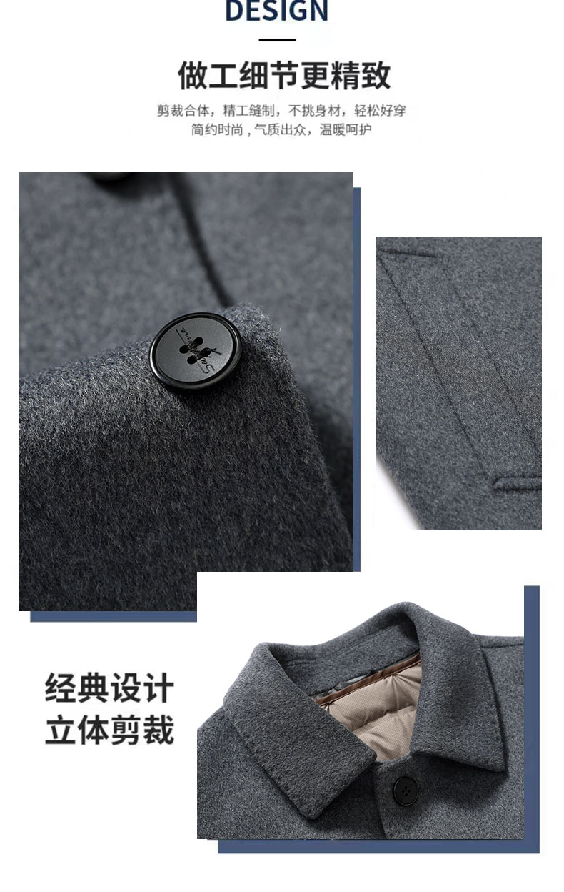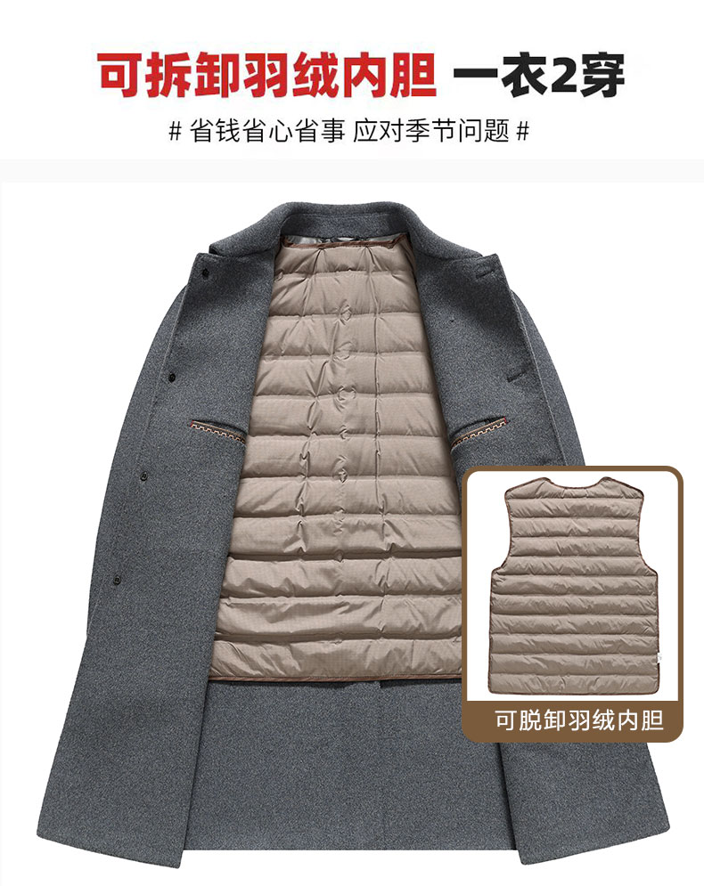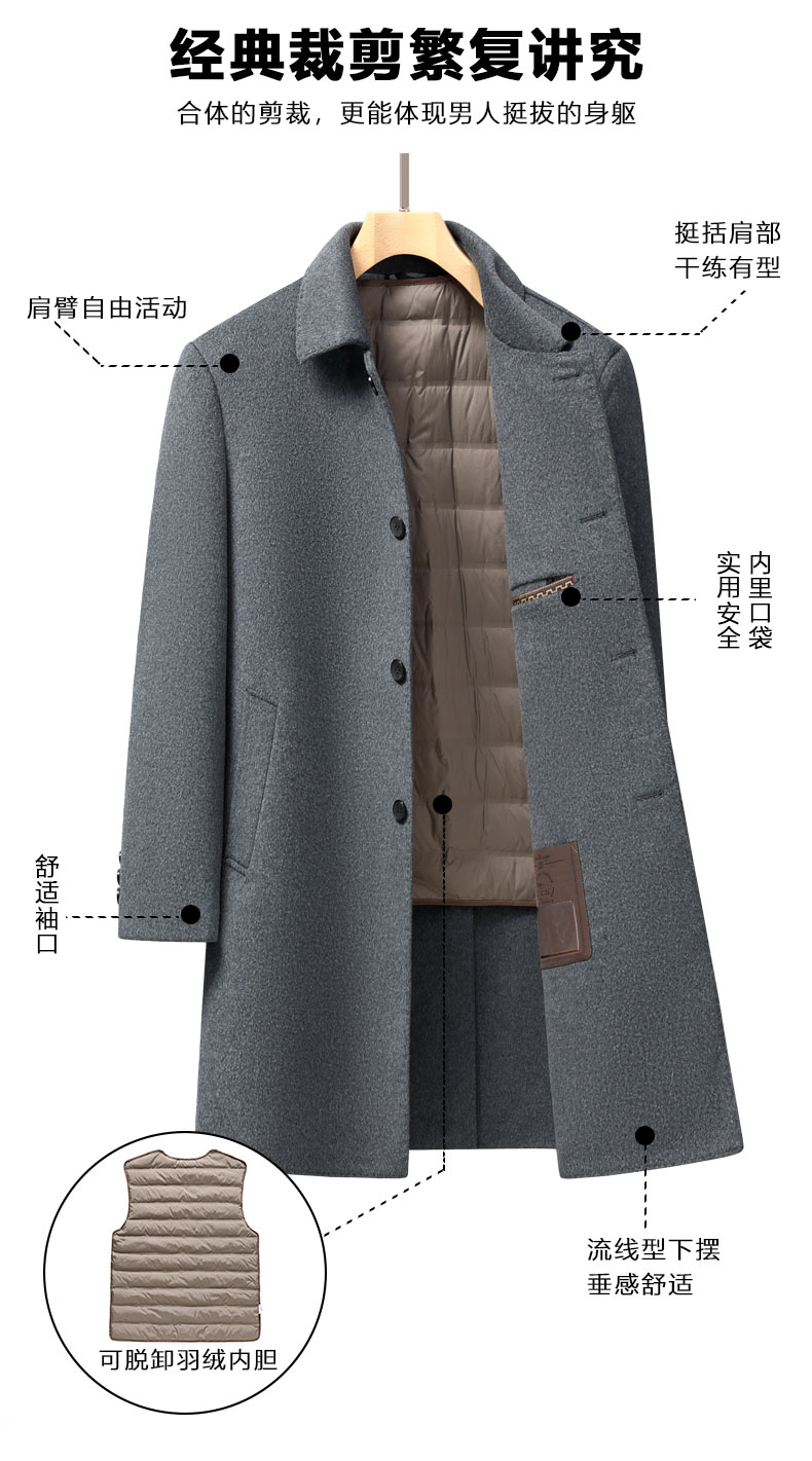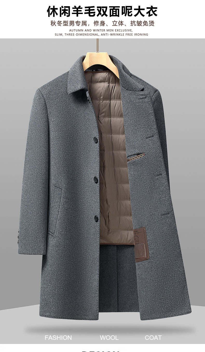 【可拆卸羽绒内胆】【绵羊毛】【新款DXS】大依优型大码中长款翻领羊毛呢大衣外套商务夹克男宽松加肥加大码上衣胖子正装休闲