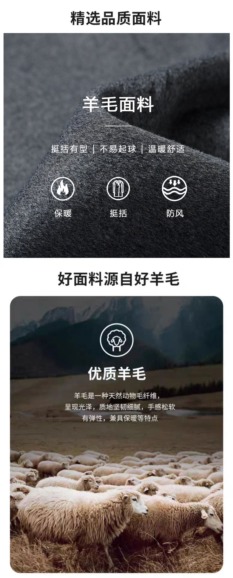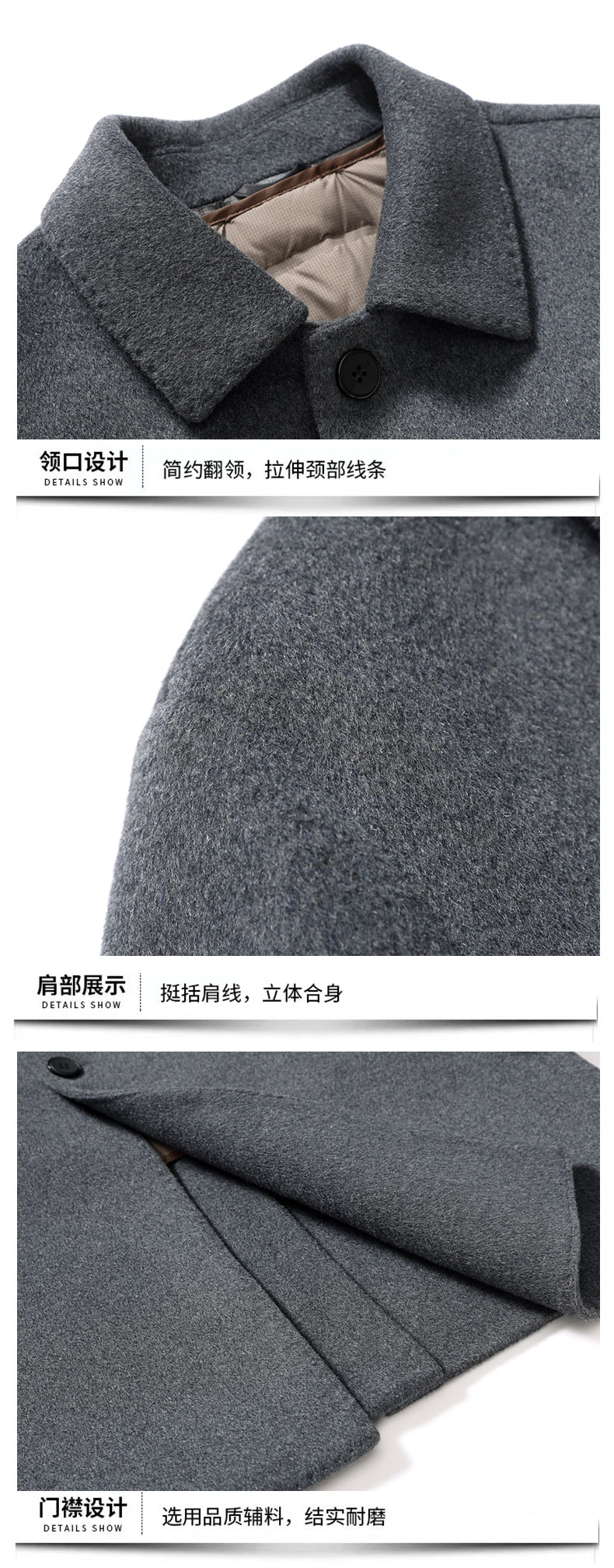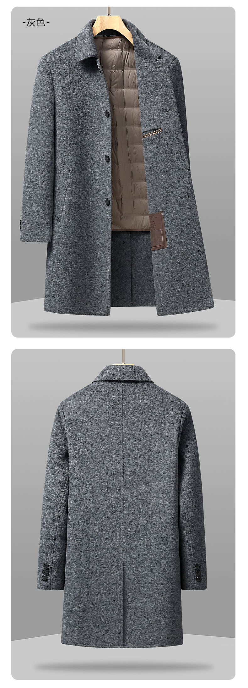 【可拆卸羽绒内胆】【绵羊毛】【新款DXS】大依优型大码中长款翻领羊毛呢大衣外套商务夹克男宽松加肥加大码上衣胖子正装休闲
