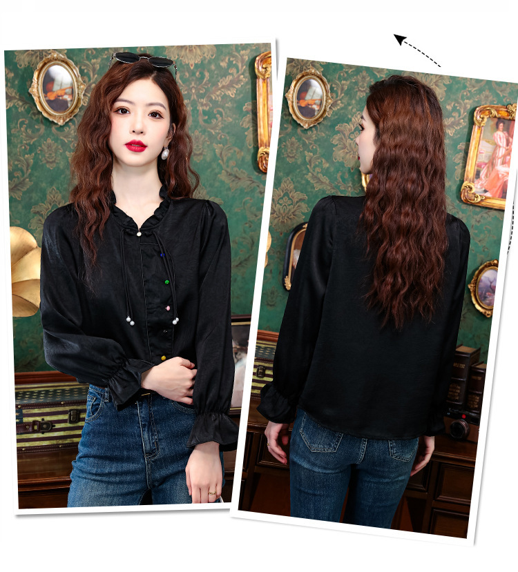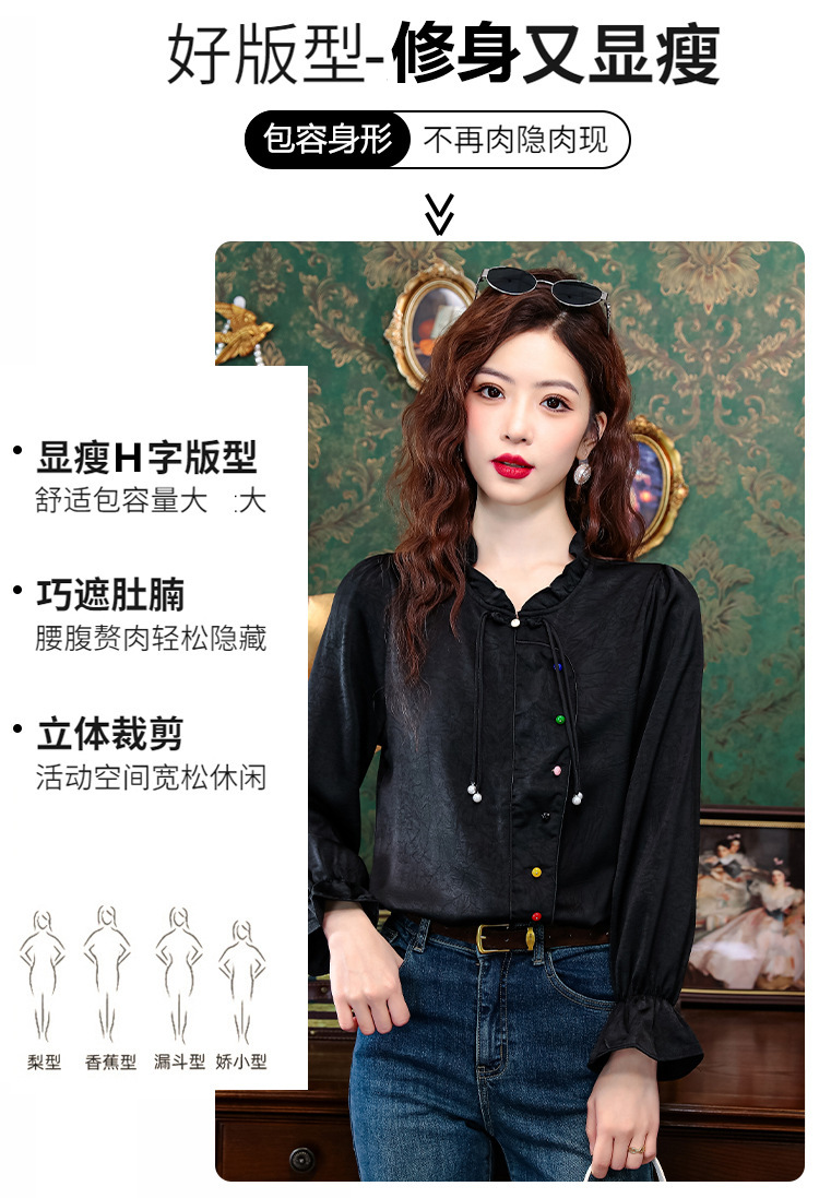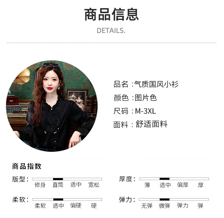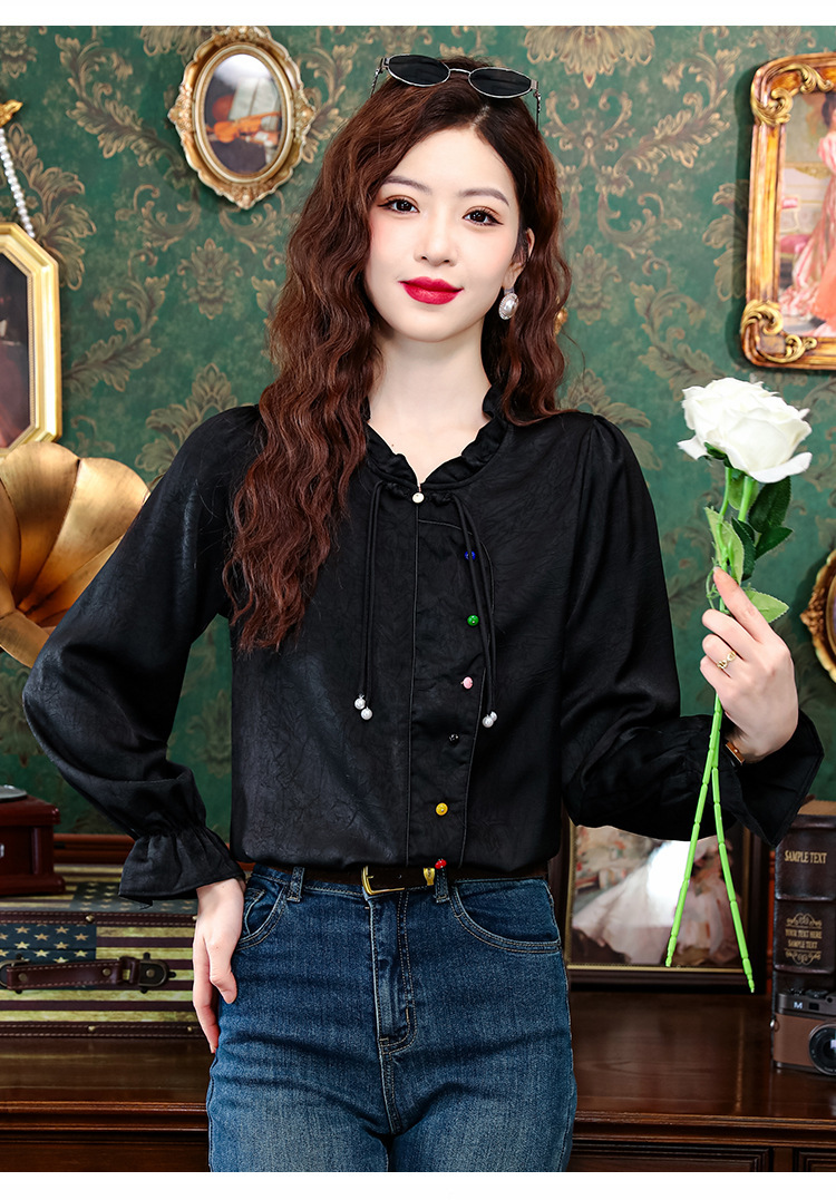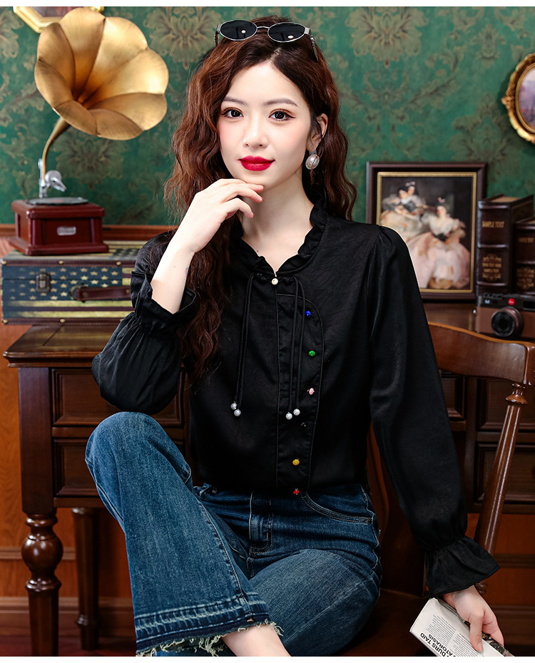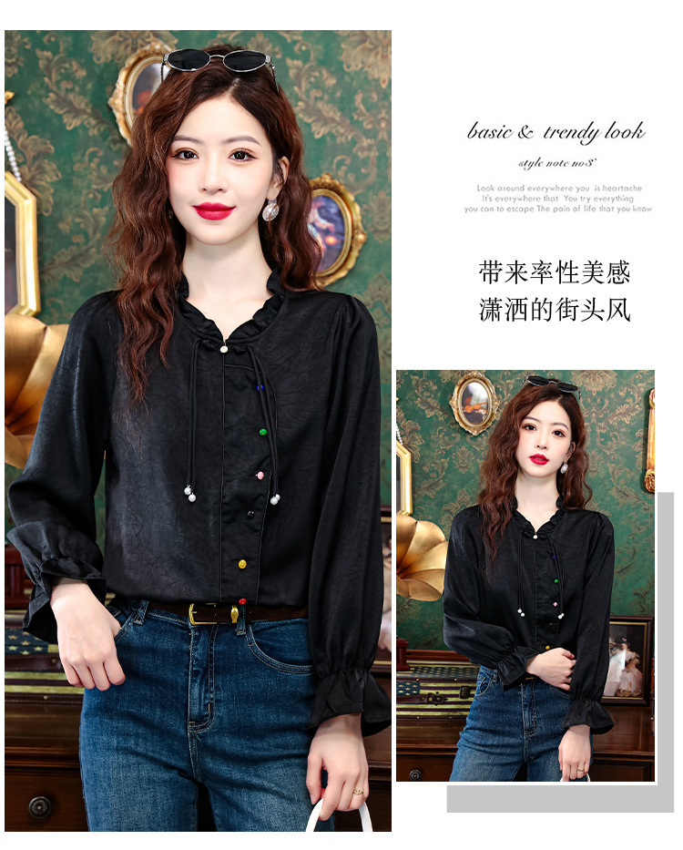 设计感气质盘扣,法式木耳边长袖国风衬衫KQL-355H8006