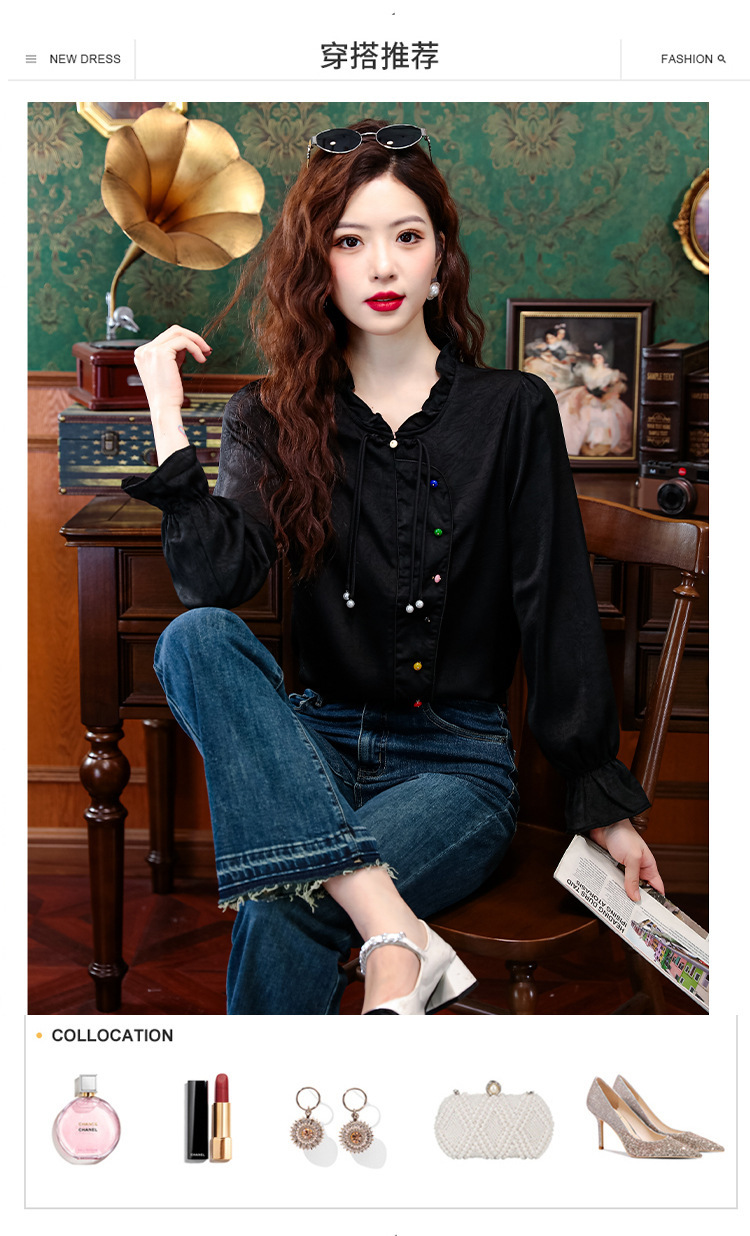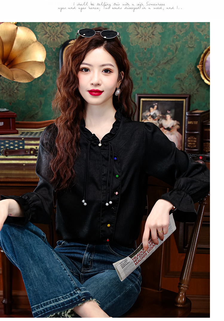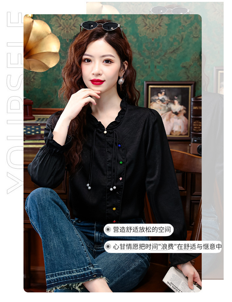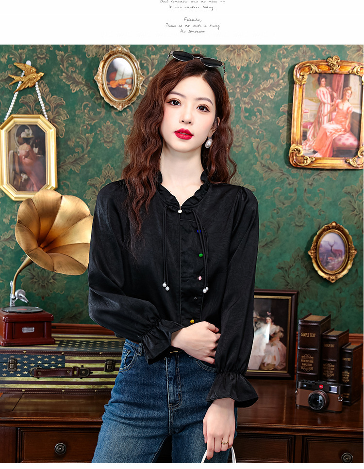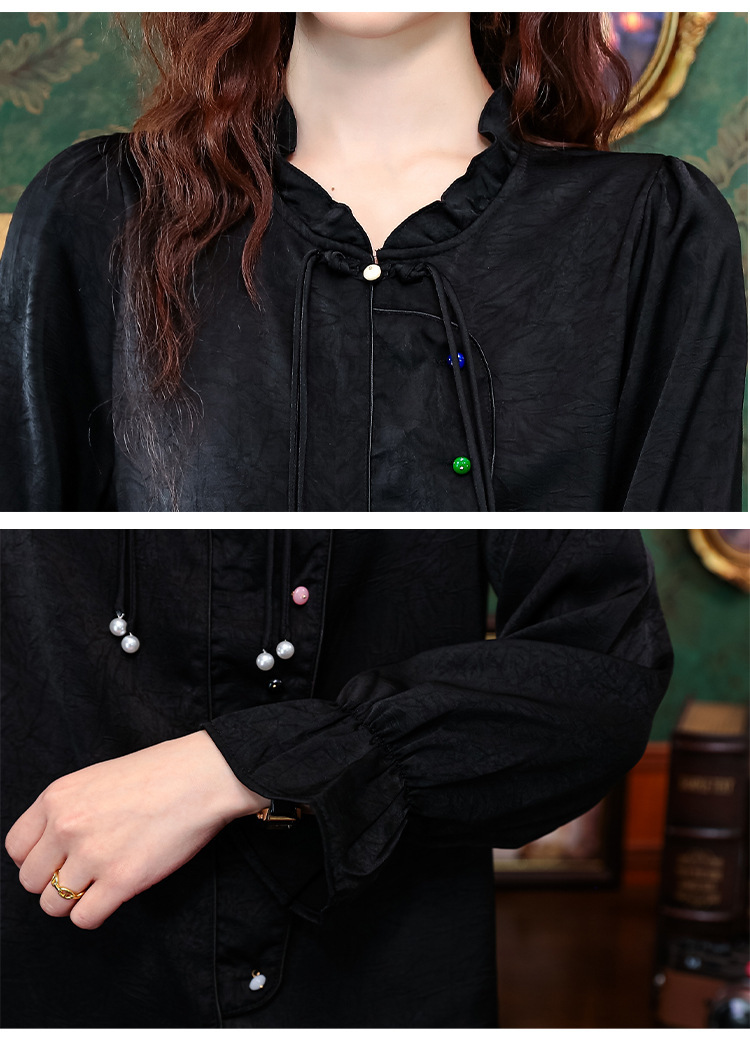 设计感气质盘扣,法式木耳边长袖国风衬衫KQL-355H8006