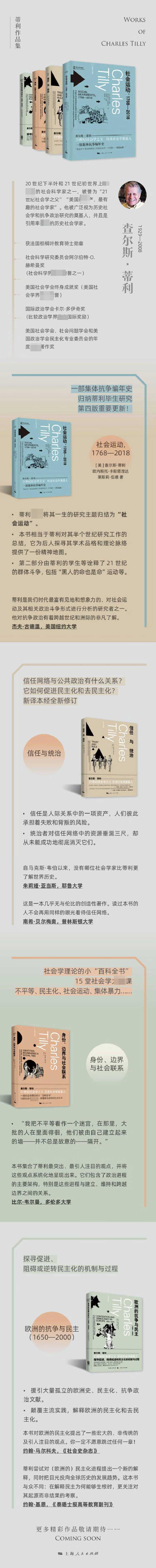 尽管蒂利在2008年离开了我们,但他的著作却始终焕发着巨大活力,正与我们一同努力理解当代的社会运动。
