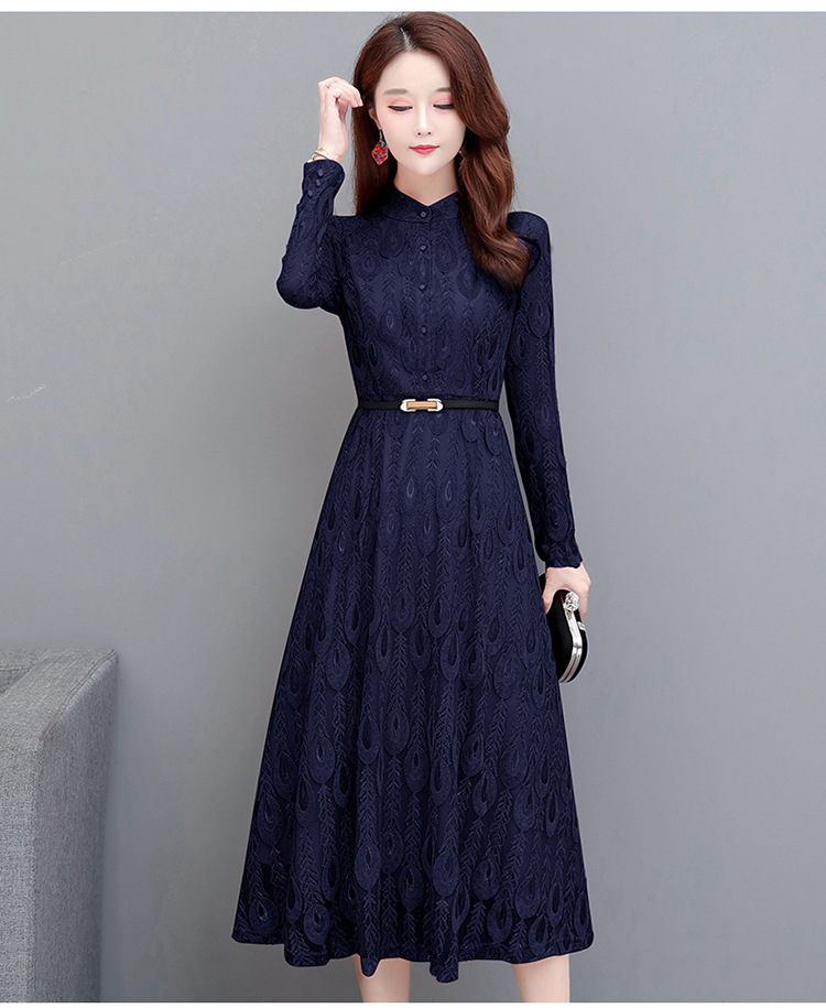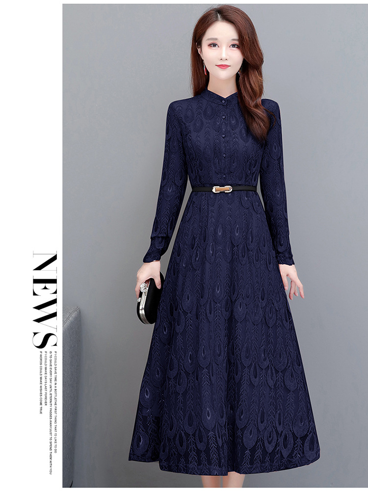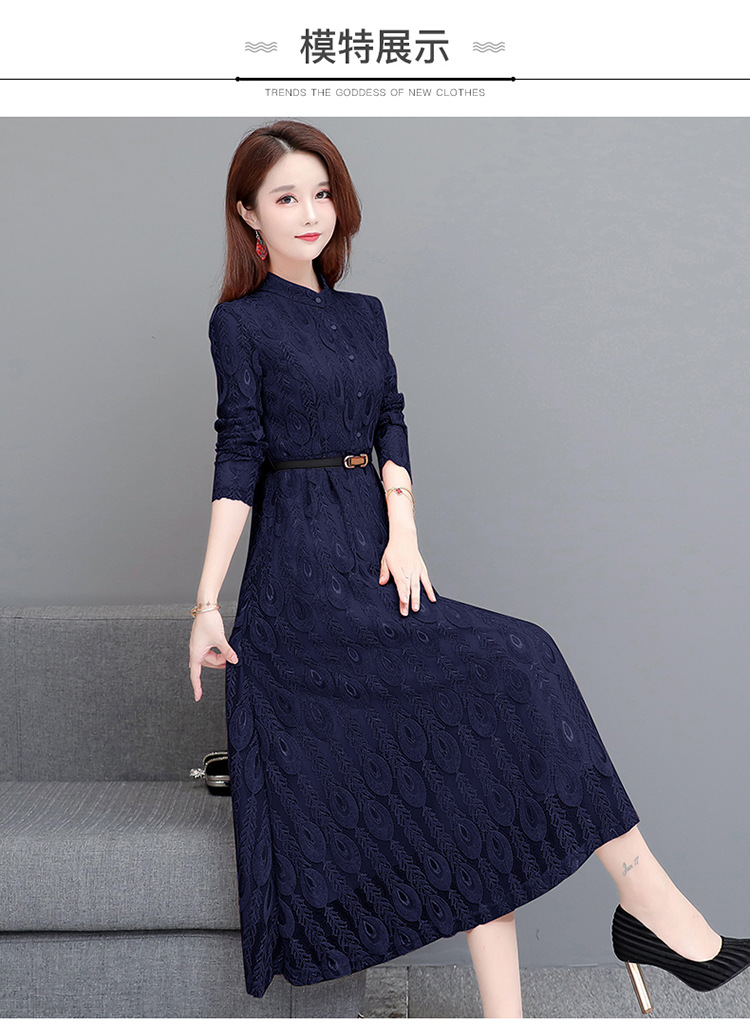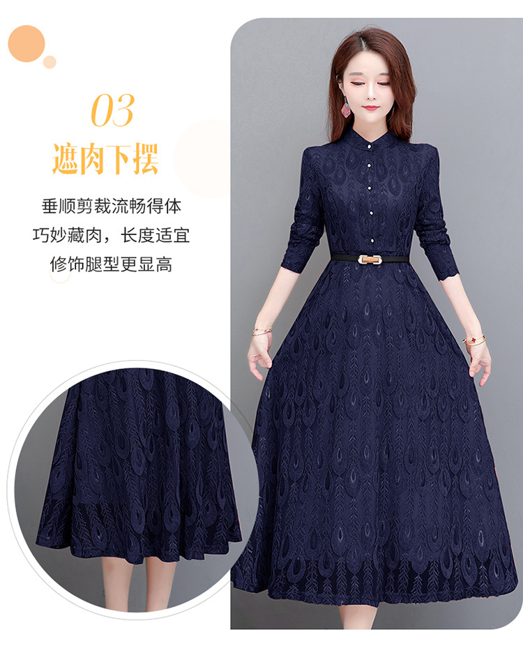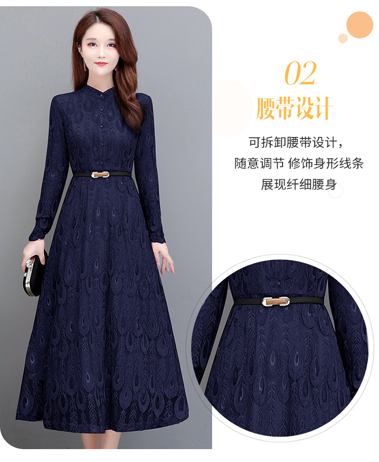 QYM 231381-Y时尚气质孔雀羽毛花长款连衣裙 商品图4