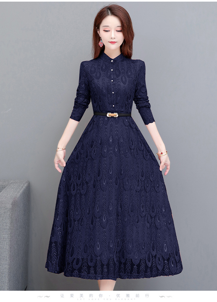 QYM 231381-Y时尚气质孔雀羽毛花长款连衣裙 商品图3