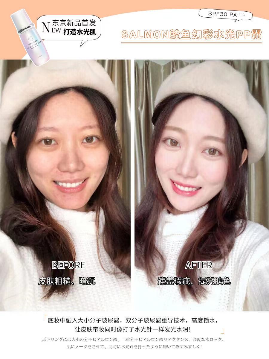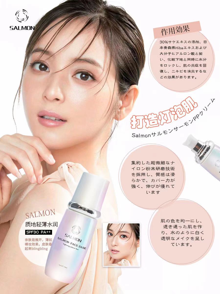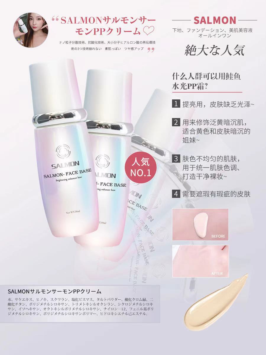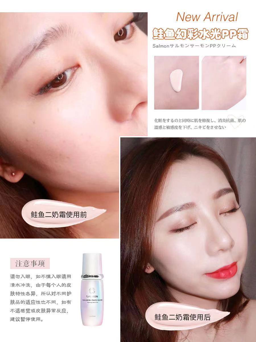 现货日本Salmon PP鲑鱼二奶霜隔离妆前乳鲑鱼气垫搭配奶油水光肌