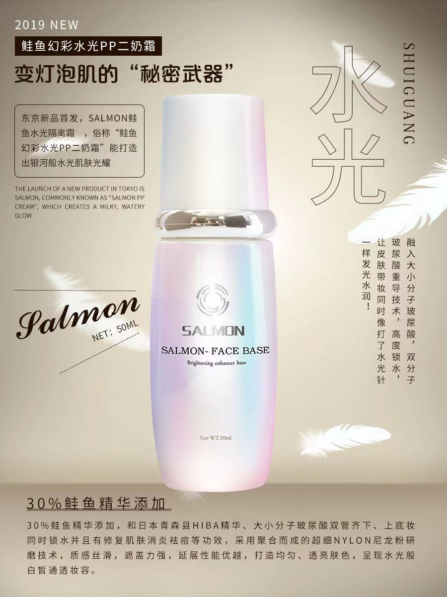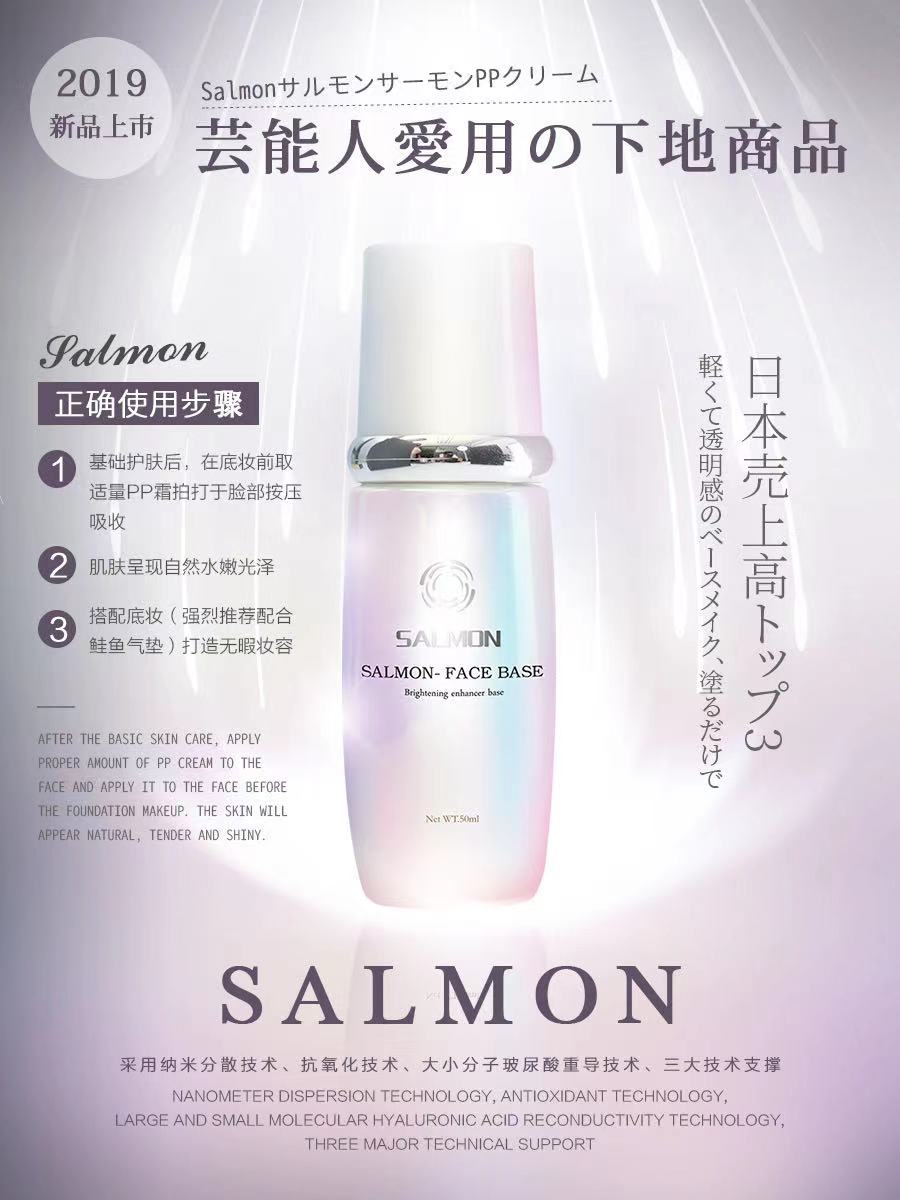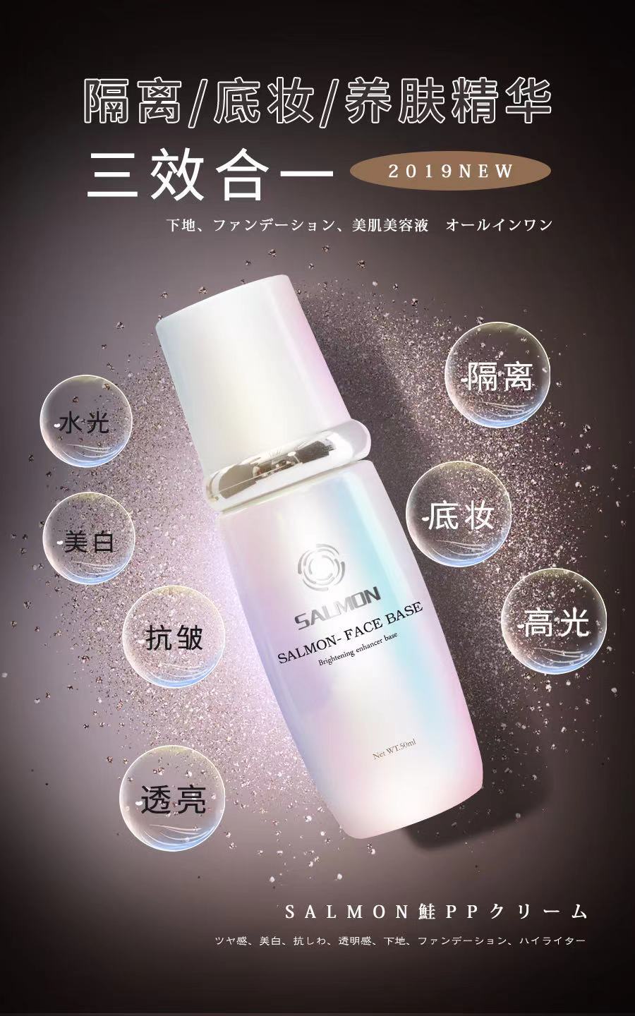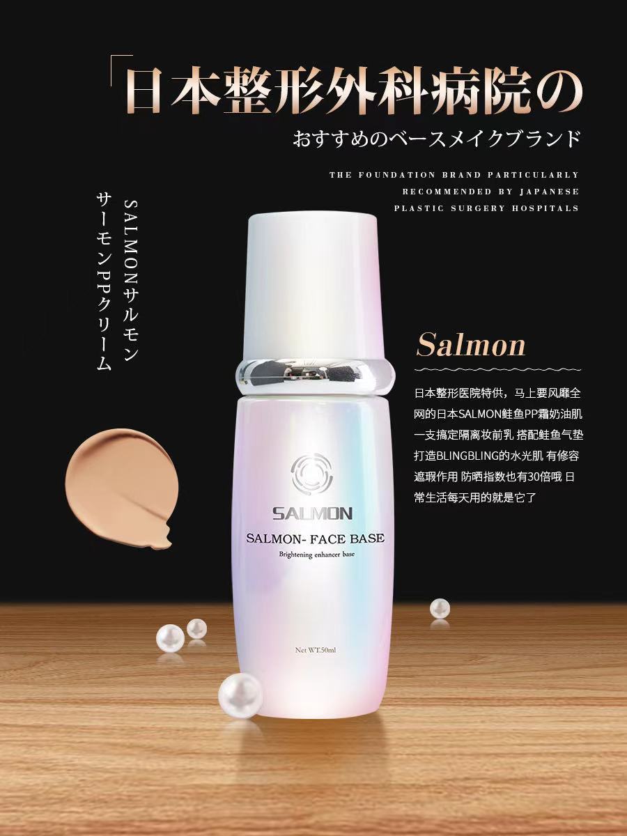 现货日本Salmon PP鲑鱼二奶霜隔离妆前乳鲑鱼气垫搭配奶油水光肌