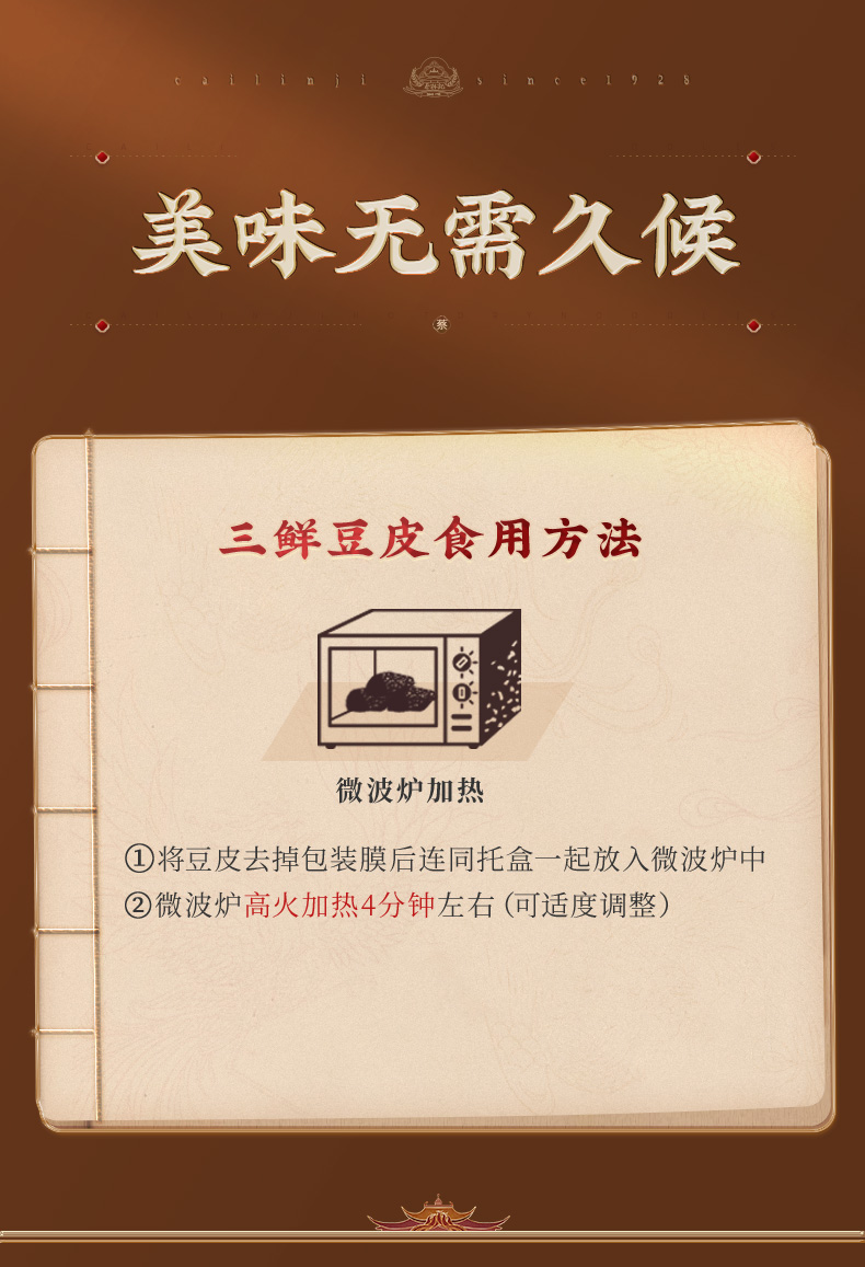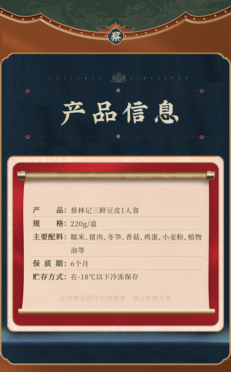 【品名】蔡林记三鲜豆皮/脆皮糯米鸡 【规格】 三鲜豆皮220g/盒 糯米鸡252g/盒 【保质期】6个月 【储存方式】在-18℃以下冷冻密封保存 【产地】湖北 【发货地】湖北 【发货快递】中通 【不发货区域】新疆、西藏、海南、内蒙古、青海、黑龙江、吉林、港澳台地区不发 【发货时效】48小时,节假日顺延 |