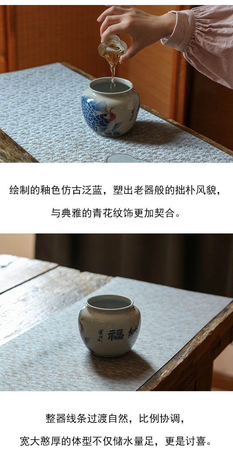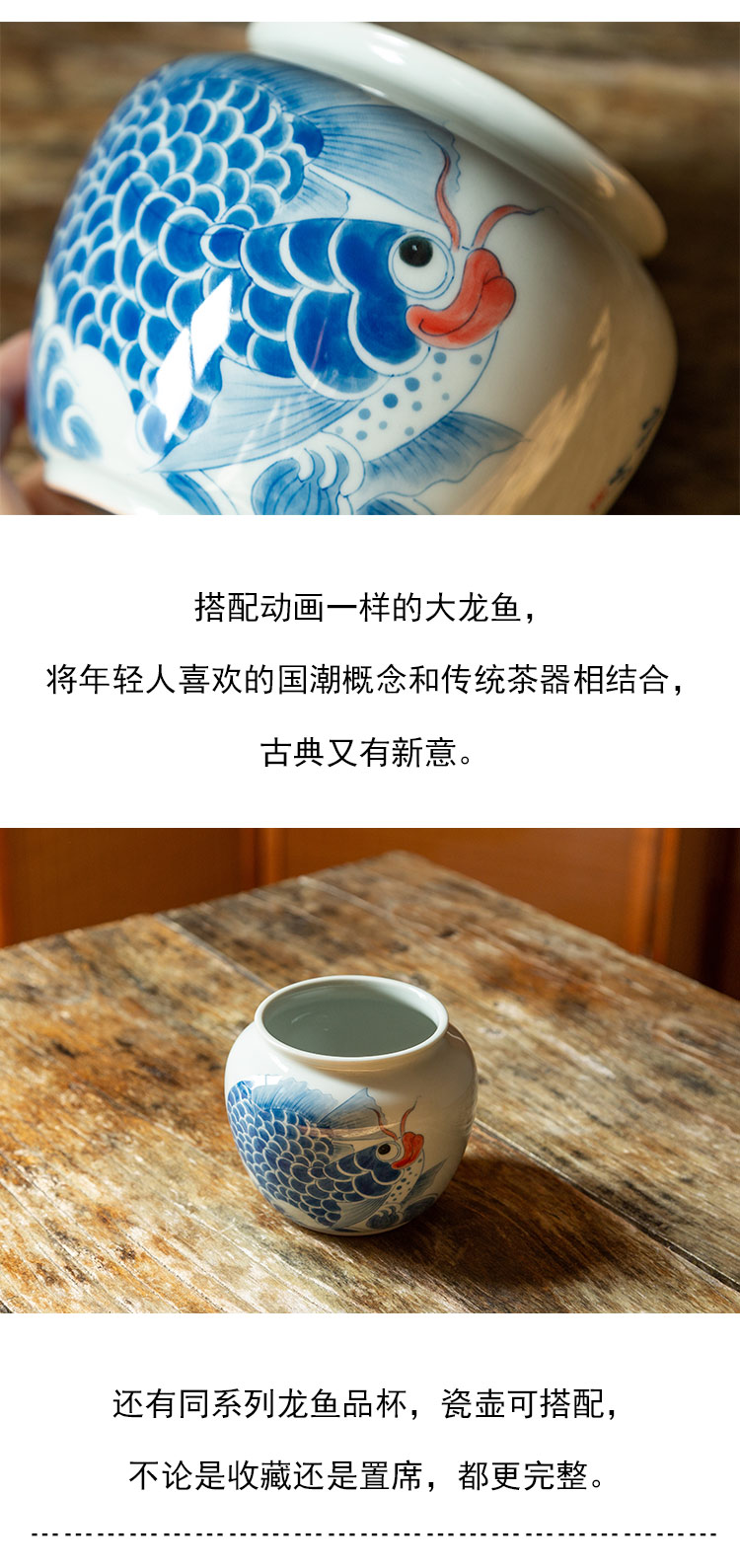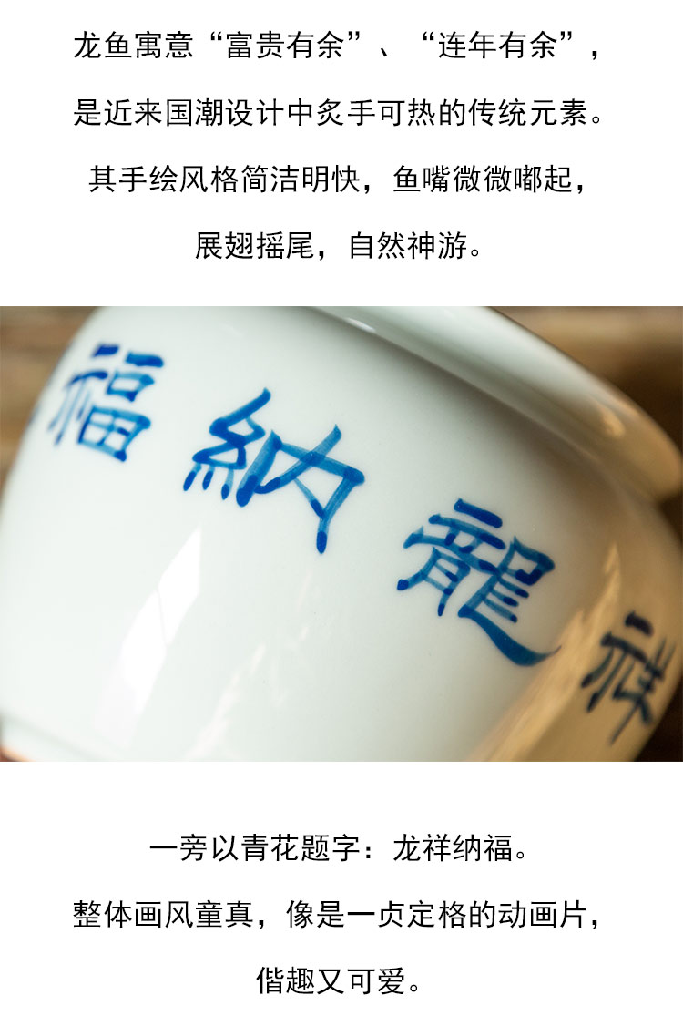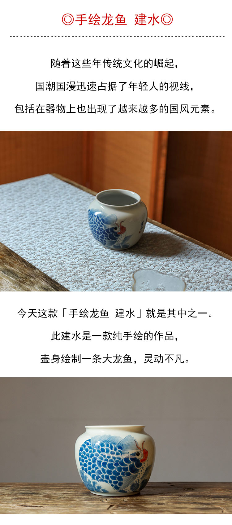 茶香记 手绘龙鱼建水龙祥纳福520ml寓意美好经典器型陶瓷水盂茶洗