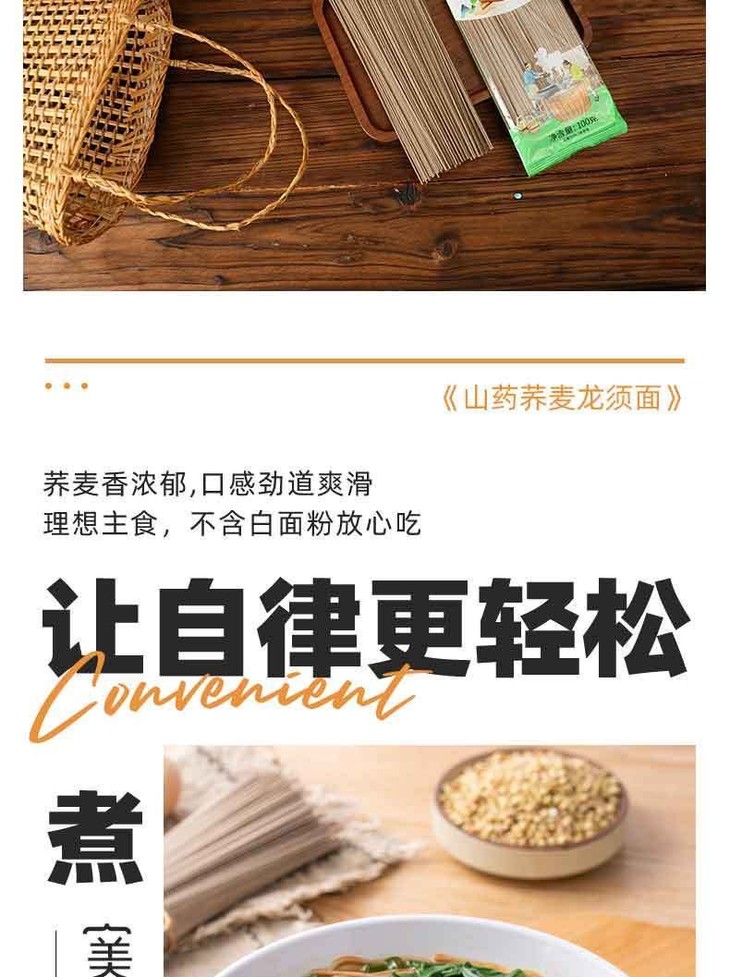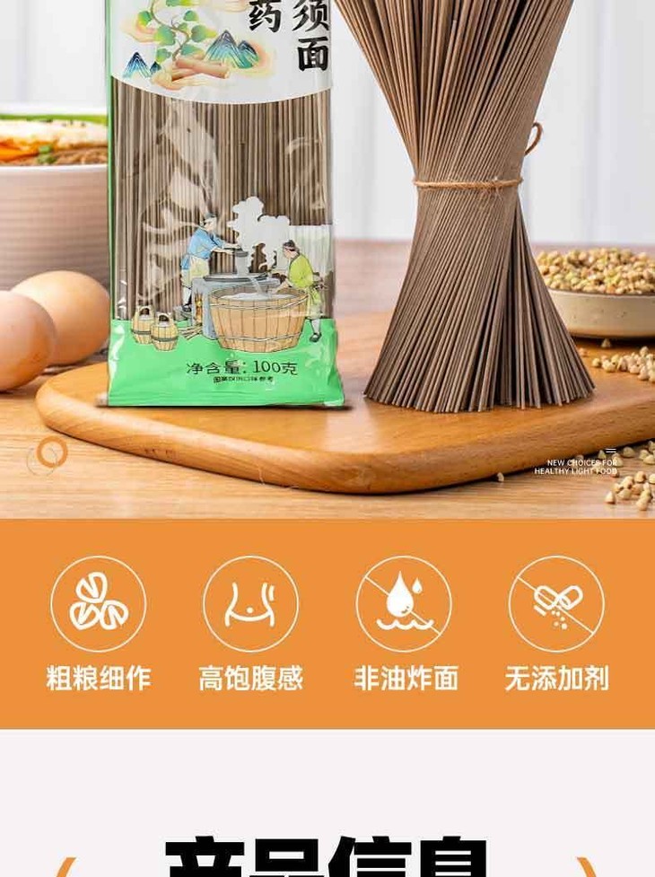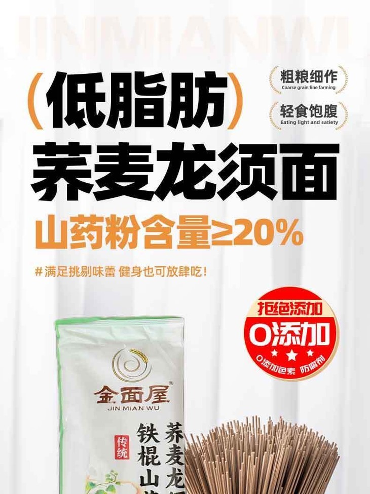 【金面屋铁棍山药荞麦龙须面】非油炸低脂低卡 真粗粮高饱腹