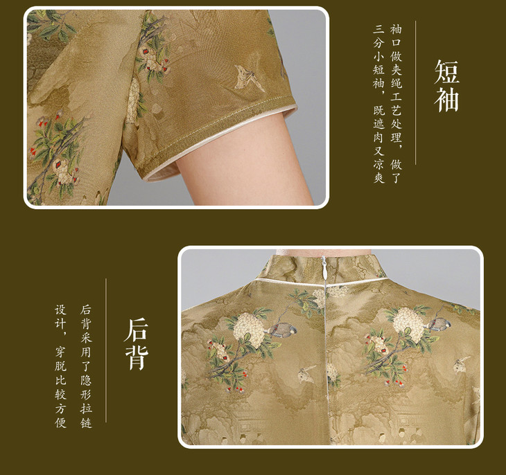 XGT唐韵2024夏季真丝桑蚕丝改良国风复古日常新中式旗袍连衣裙 商品图3