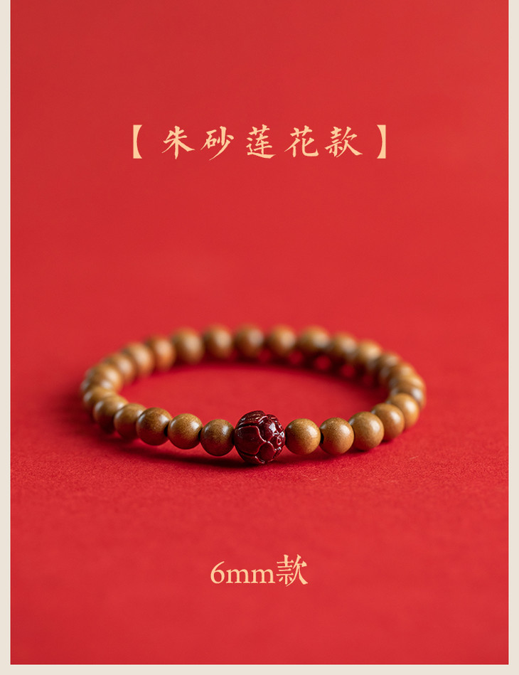 桃木莲花朱砂手链