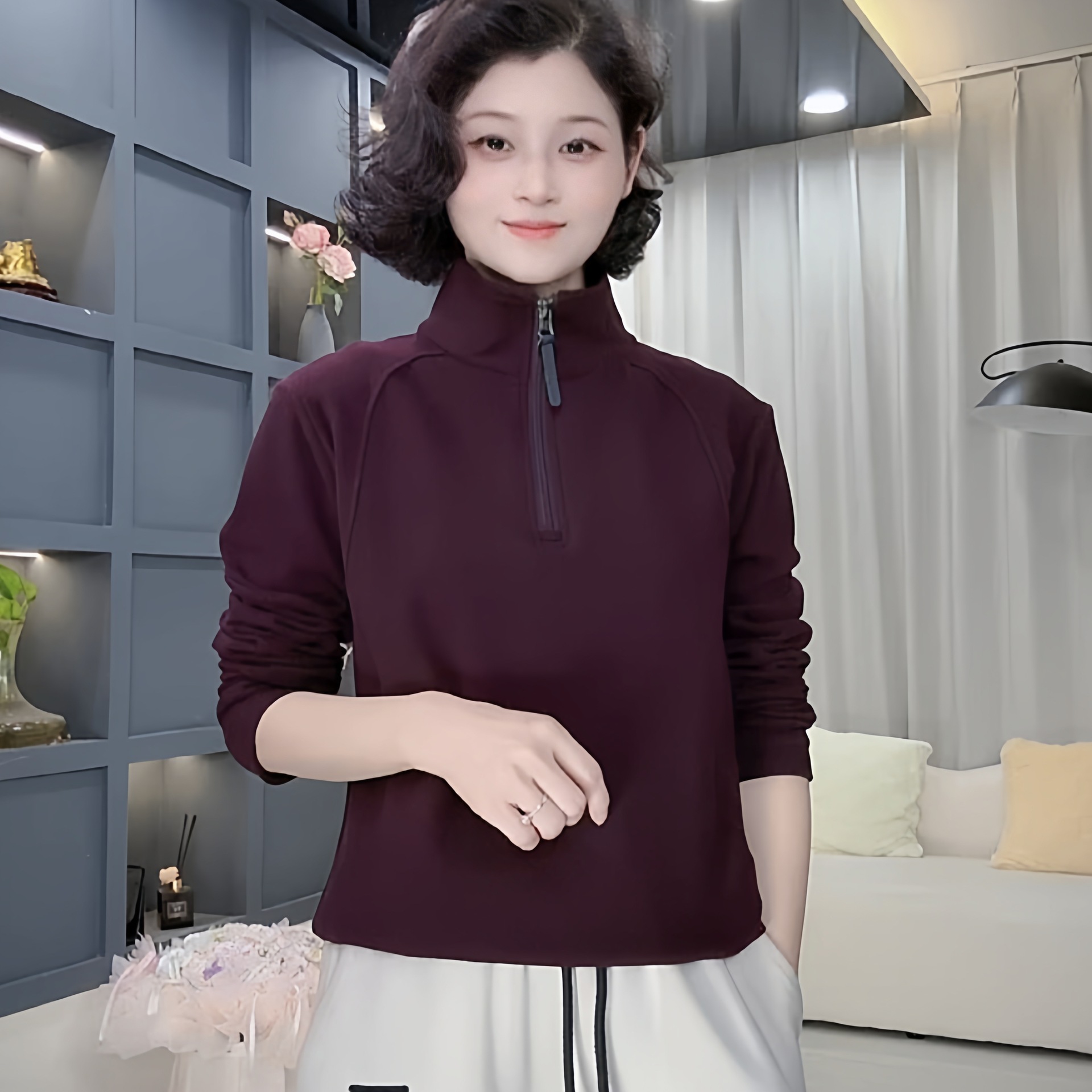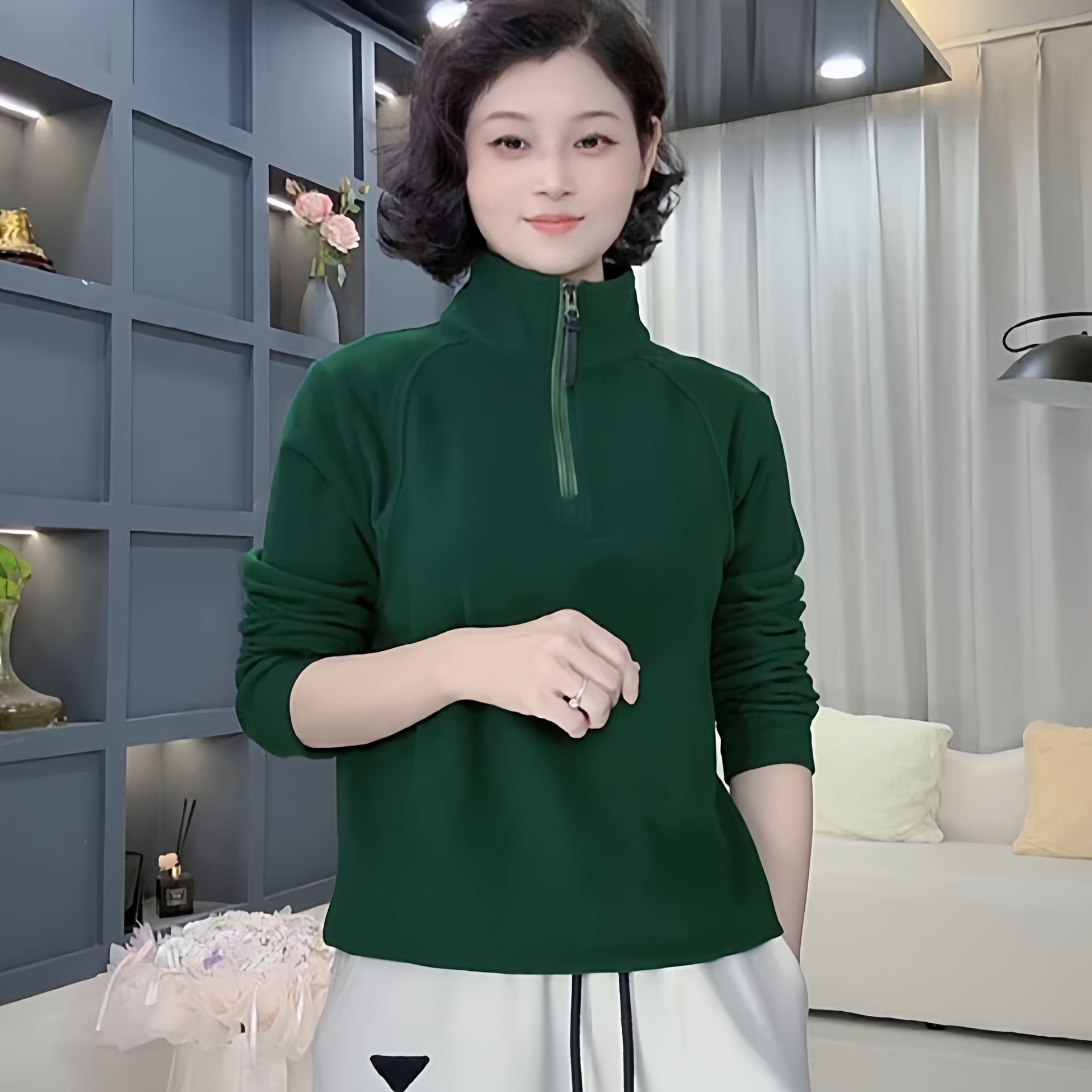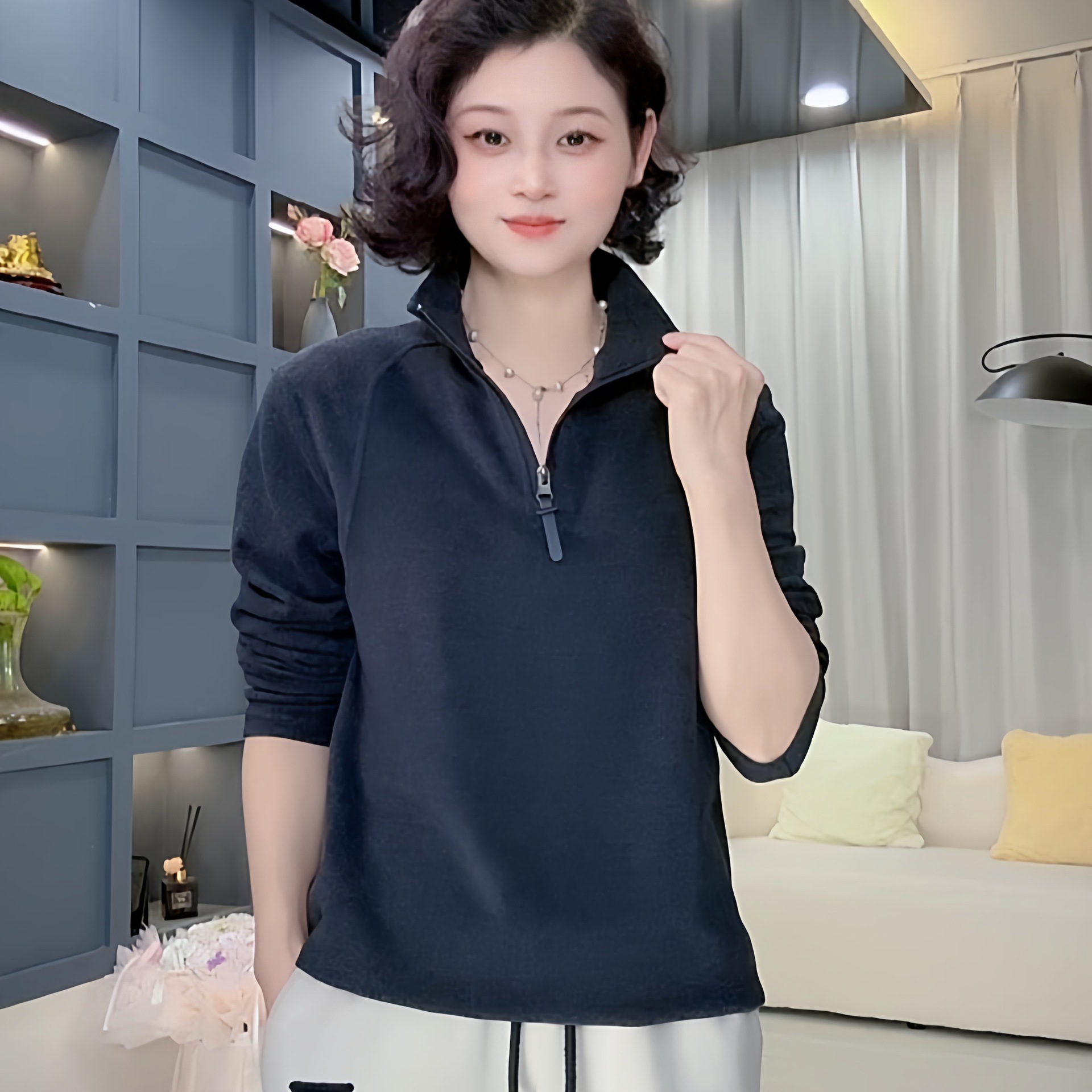时尚妈妈装双面绒卫衣女2025秋季纯色拉链长袖小衫宽松休闲上衣