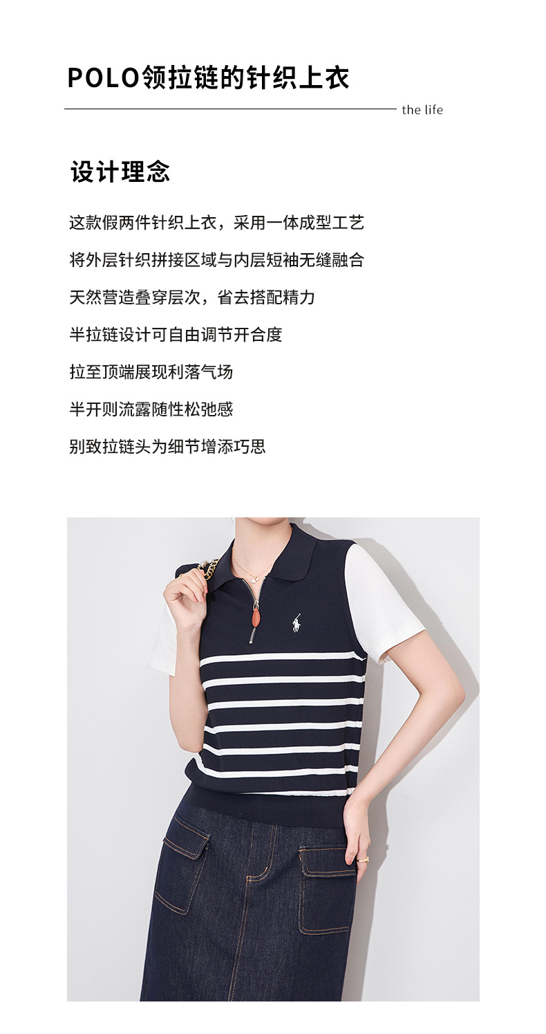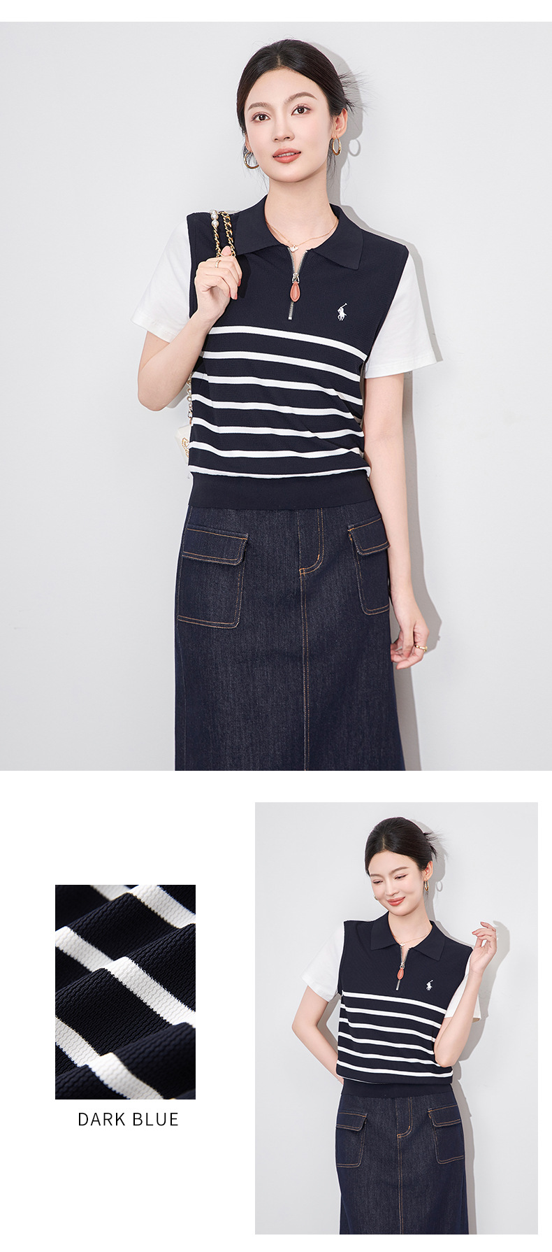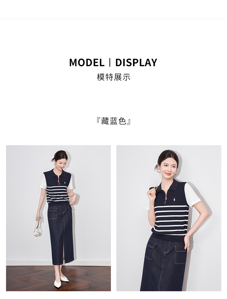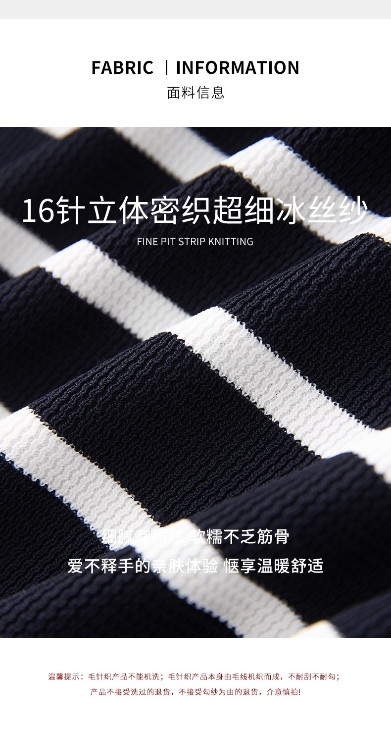 「高货wl」全新升级【铂金会员201/天猫269/差价68】(52005)洛诗琳气质通勤立体密织超细冰丝条纹设计感拼接针织T恤女