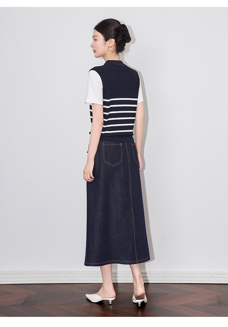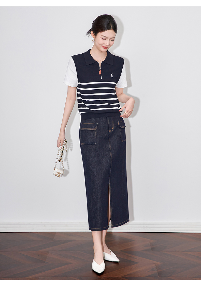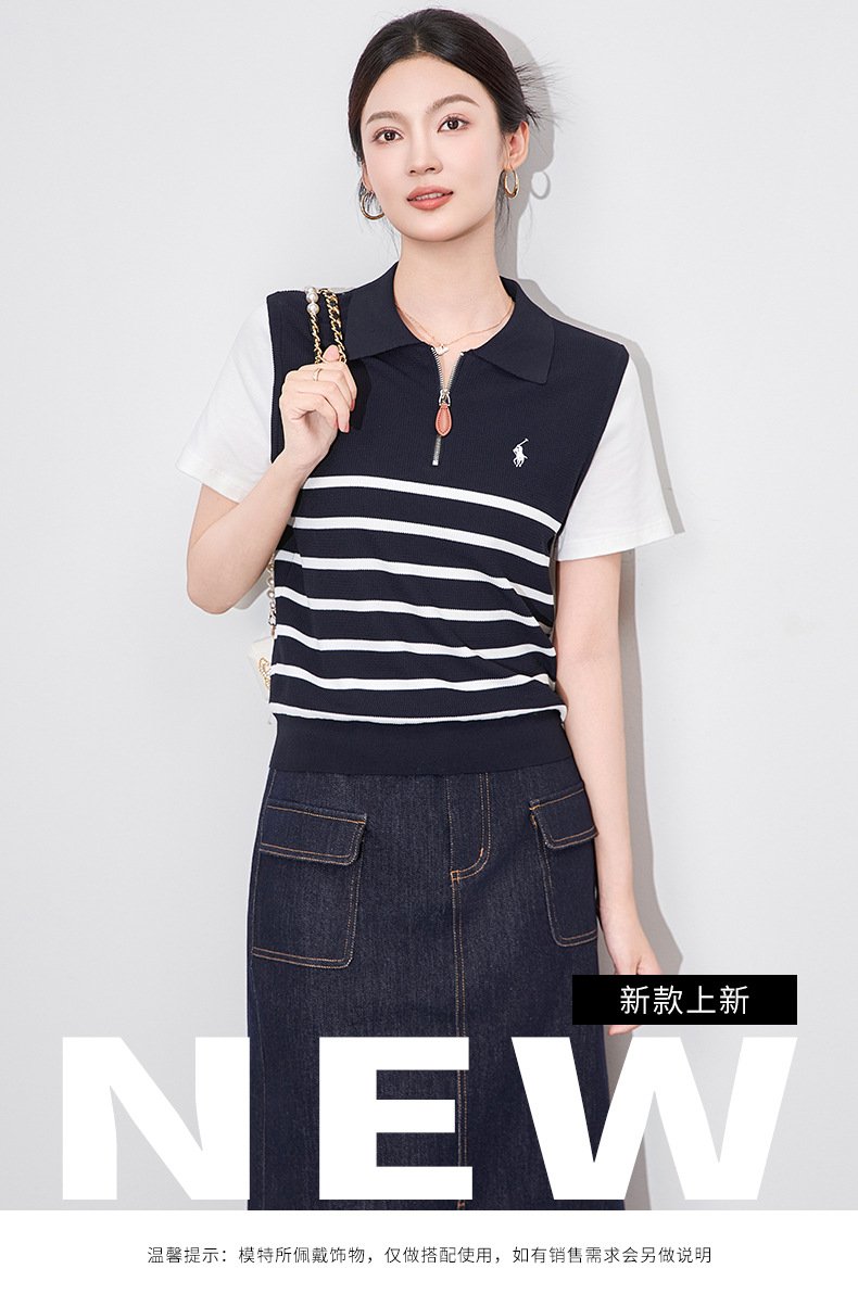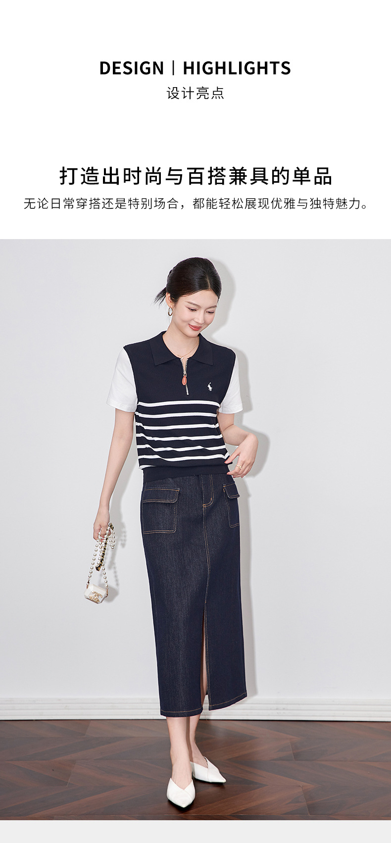 「高货wl」全新升级【铂金会员201/天猫269/差价68】(52005)洛诗琳气质通勤立体密织超细冰丝条纹设计感拼接针织T恤女