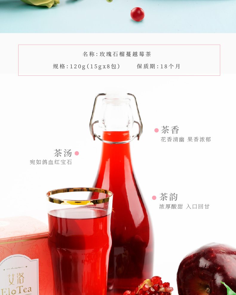 中国玫瑰谷 玫瑰石榴蔓越莓花果茶 艾洛下午茶 8小包/盒
