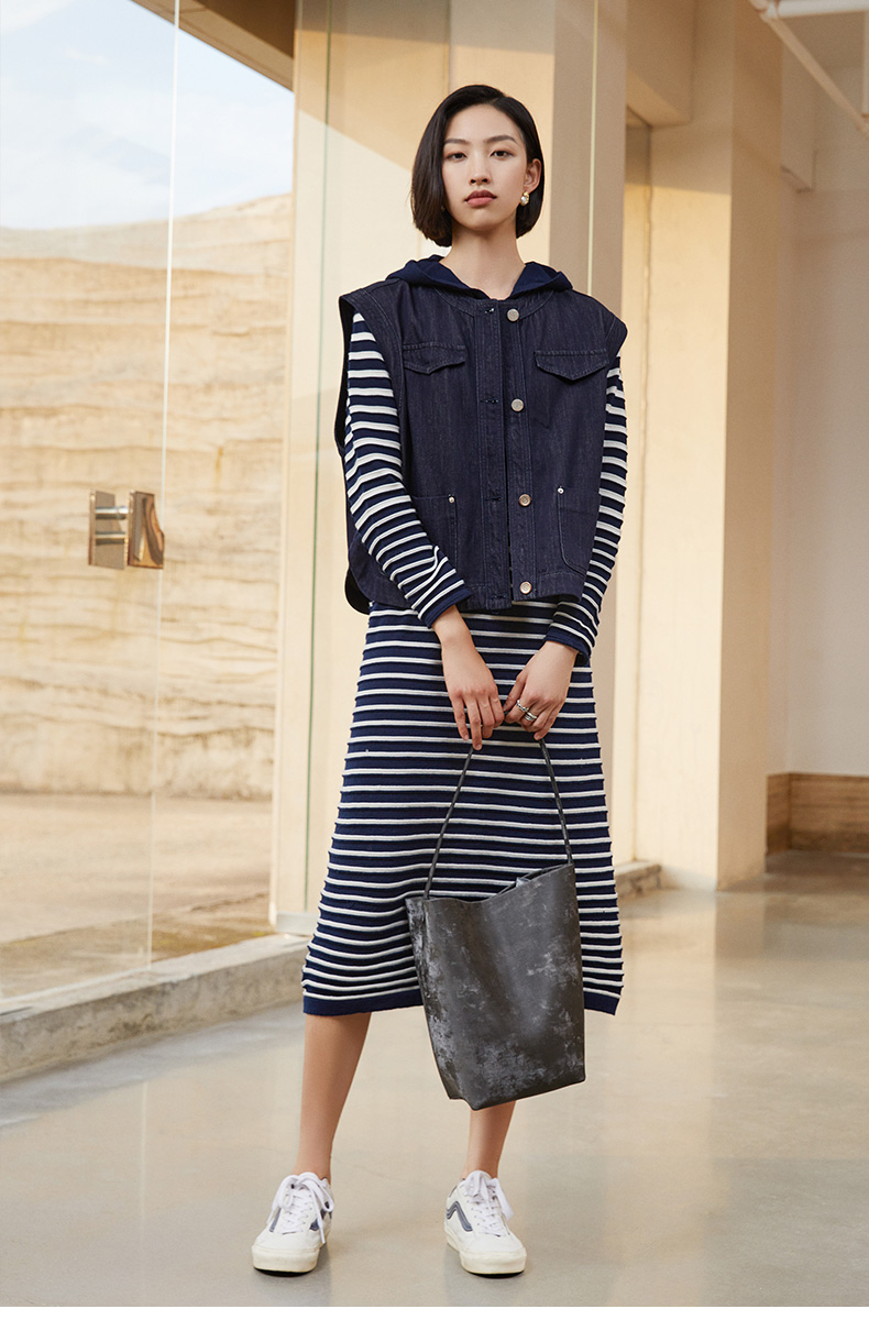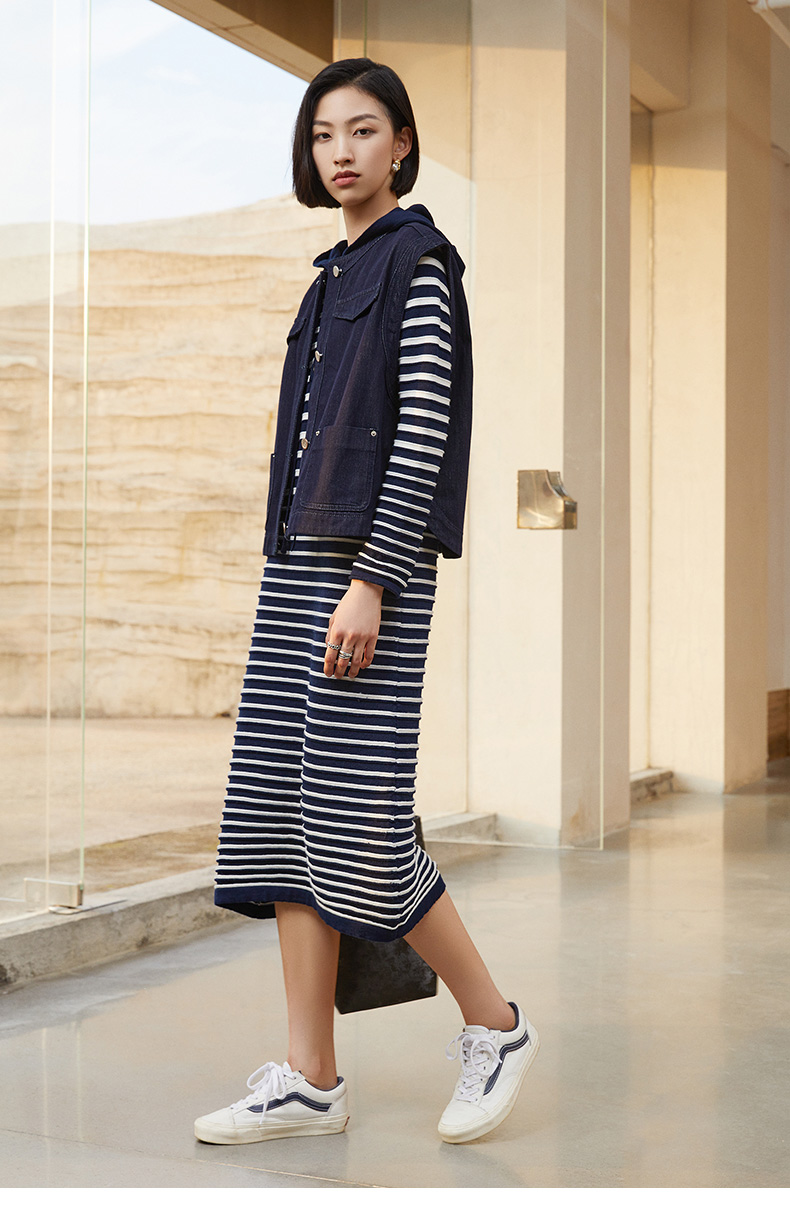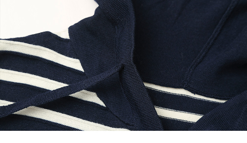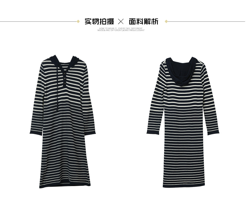 休闲连帽条纹针织连衣裙女 春秋长袖宽松显瘦中长款毛衣裙