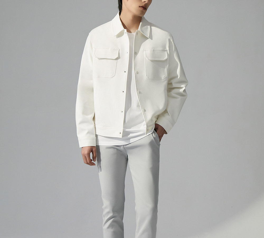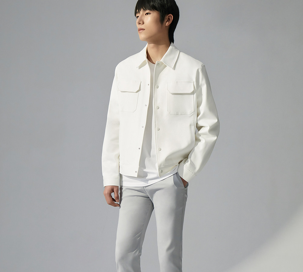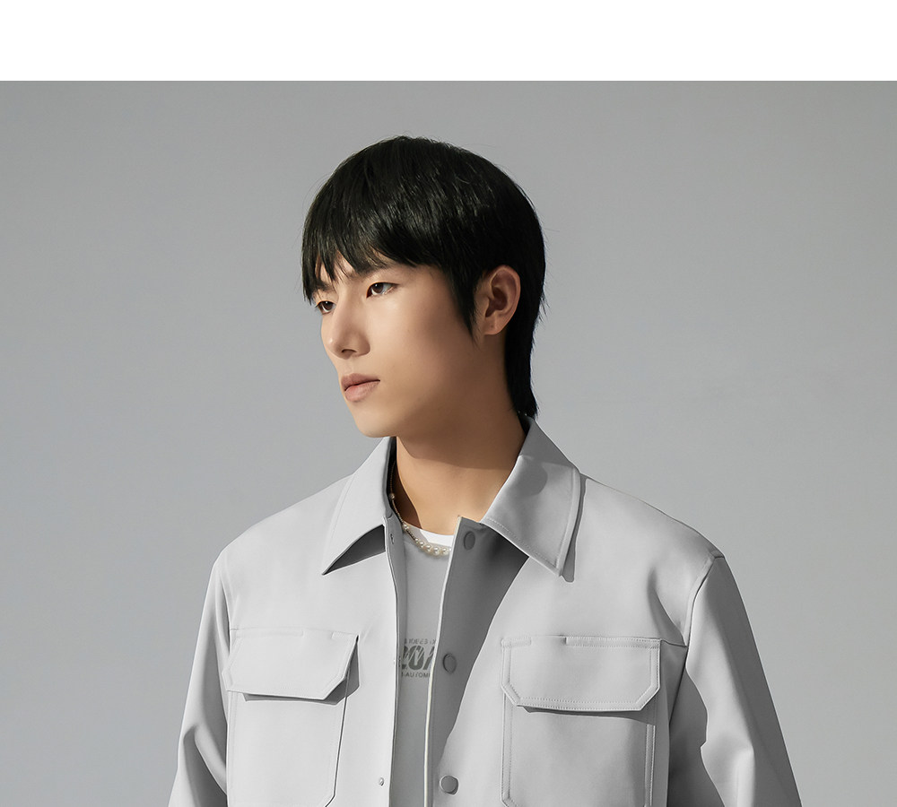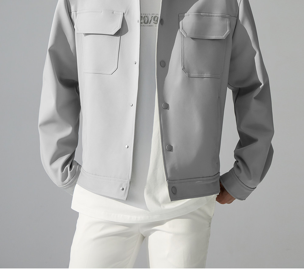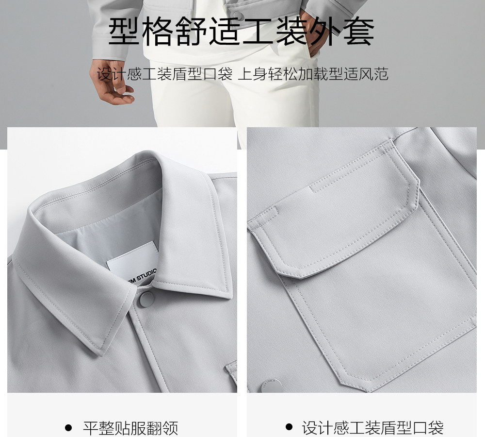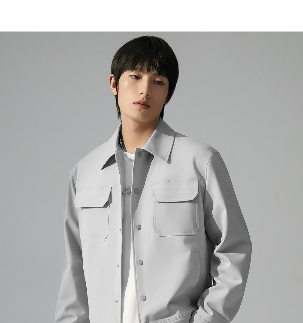 HIM漢崇 斯文工装牛仔夹克经典灰色简约休闲时尚短款外套2025秋季