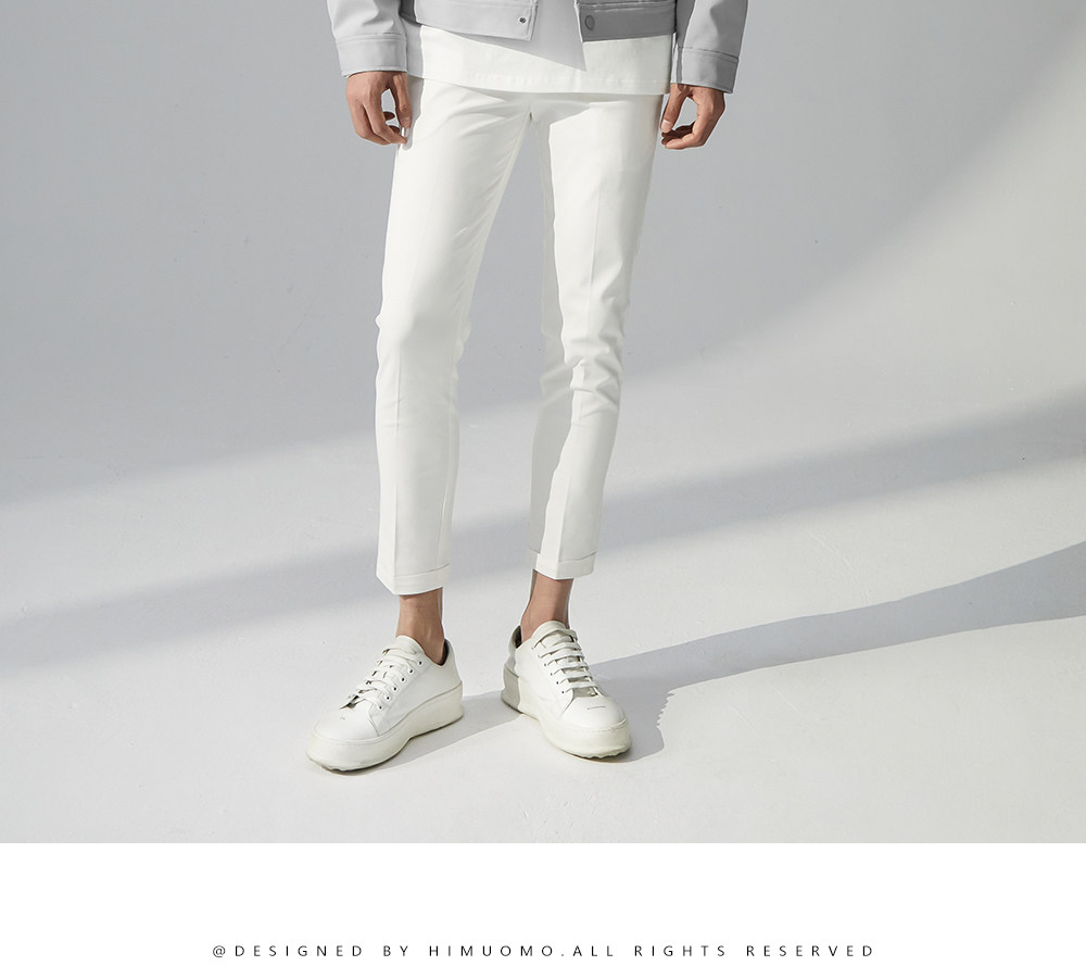 HIM漢崇 修身微弹牛仔裤时尚深灰做旧破洞休闲小脚裤男 2025秋季