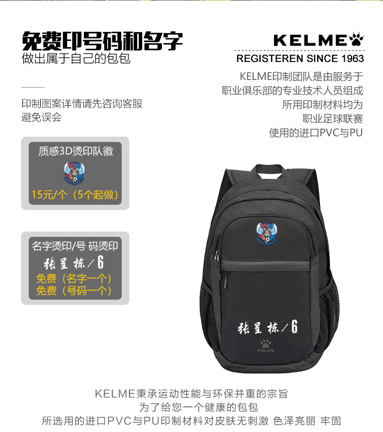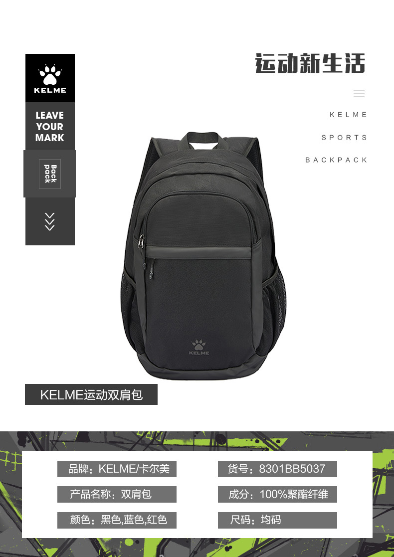 KELME卡尔美双肩背包男女户外运动包学生旅游休闲包大容量电脑包