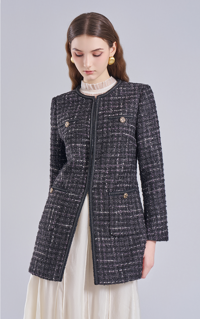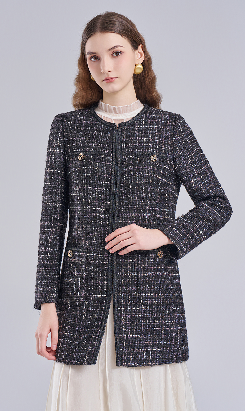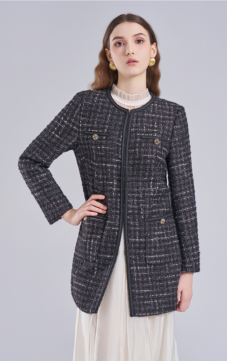 乔万尼小香风粗花呢绵羊毛大衣高级感ET4A869