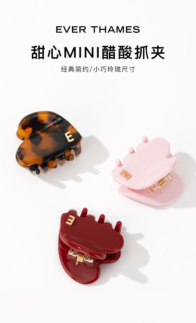 EVER THAMES 2025高级感爱心迷你抓夹刘海碎花架子侧边夹编发夹