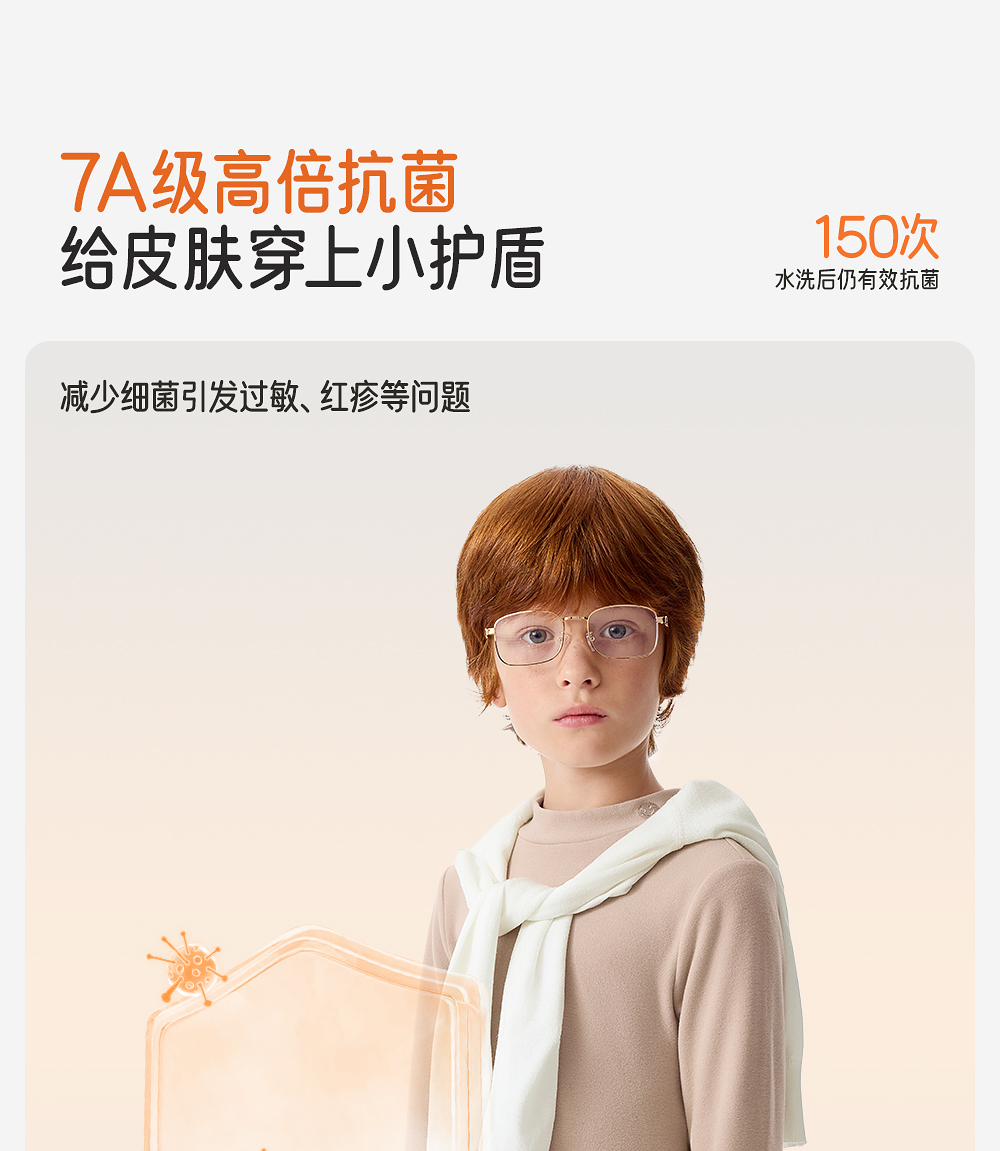 英氏儿童T恤长袖远红外7A抗菌中领套头衫男童女童春秋休闲新款