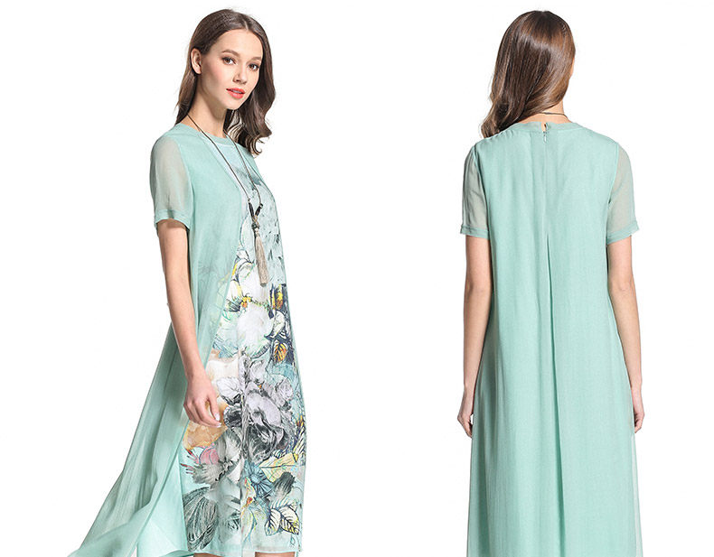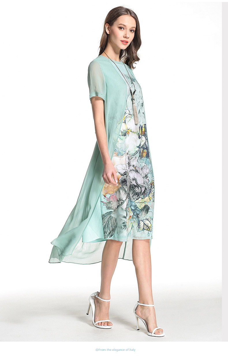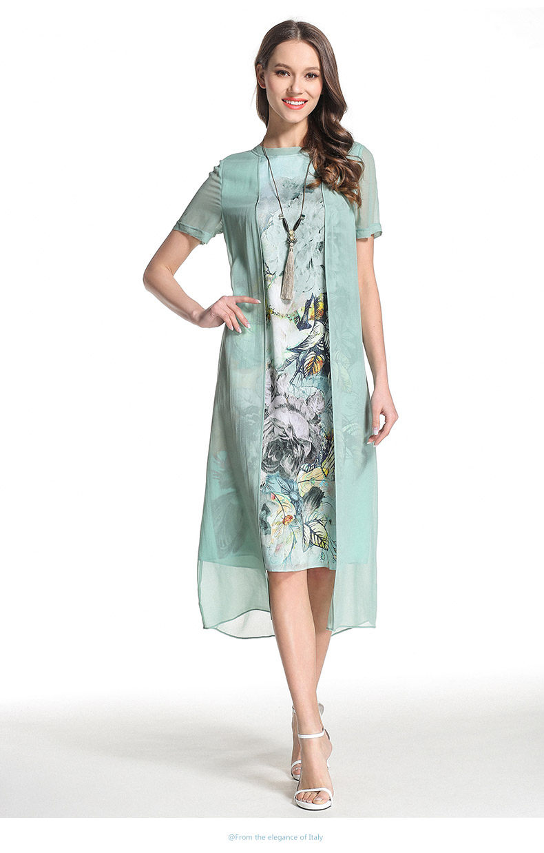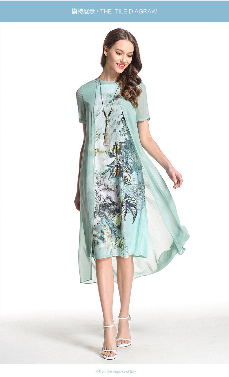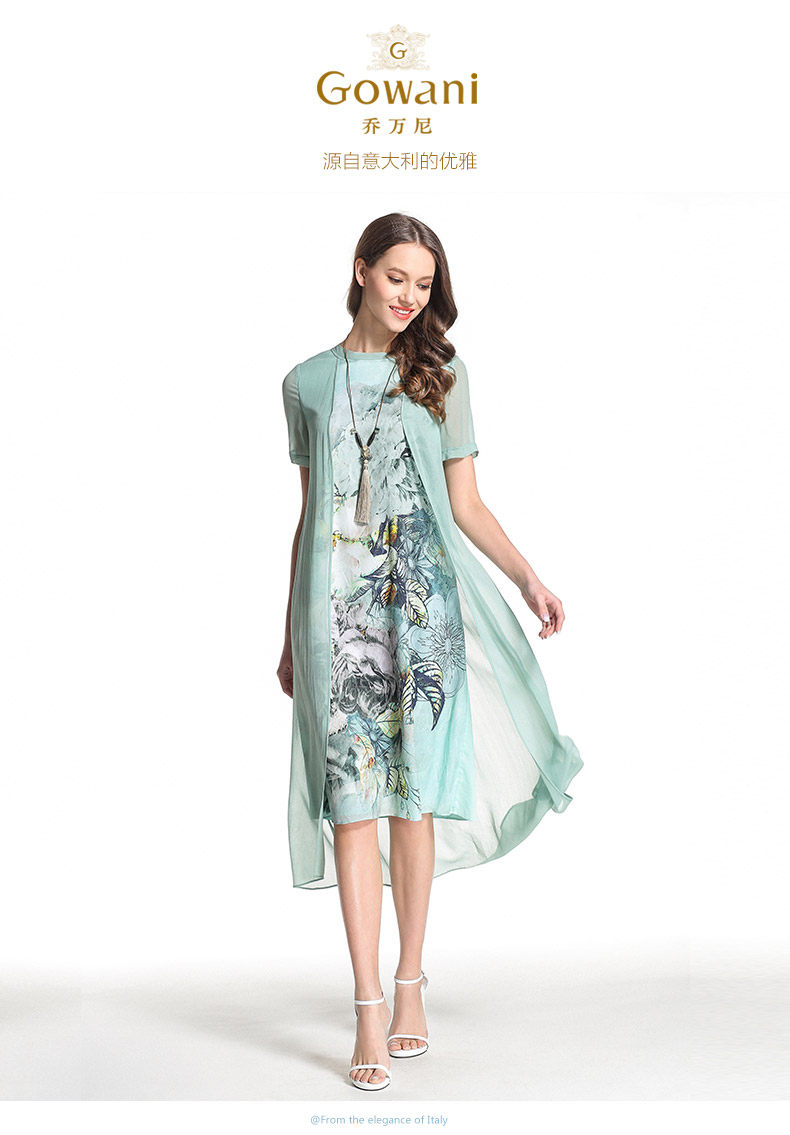 乔万尼夏季真丝印花古风假两件连衣裙EB2E852