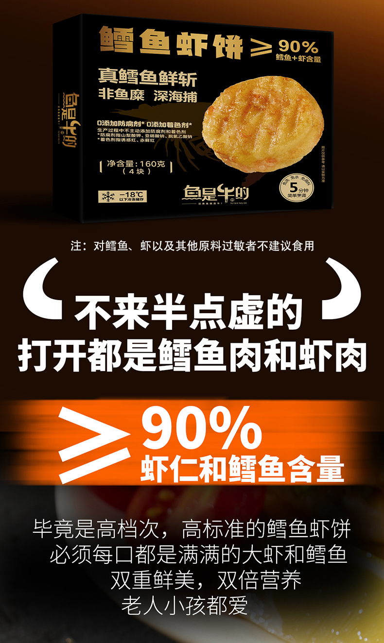 【鱼是牛的】原味鳕鱼虾饼160g/盒 儿童方便营养早餐 深海优质蛋白