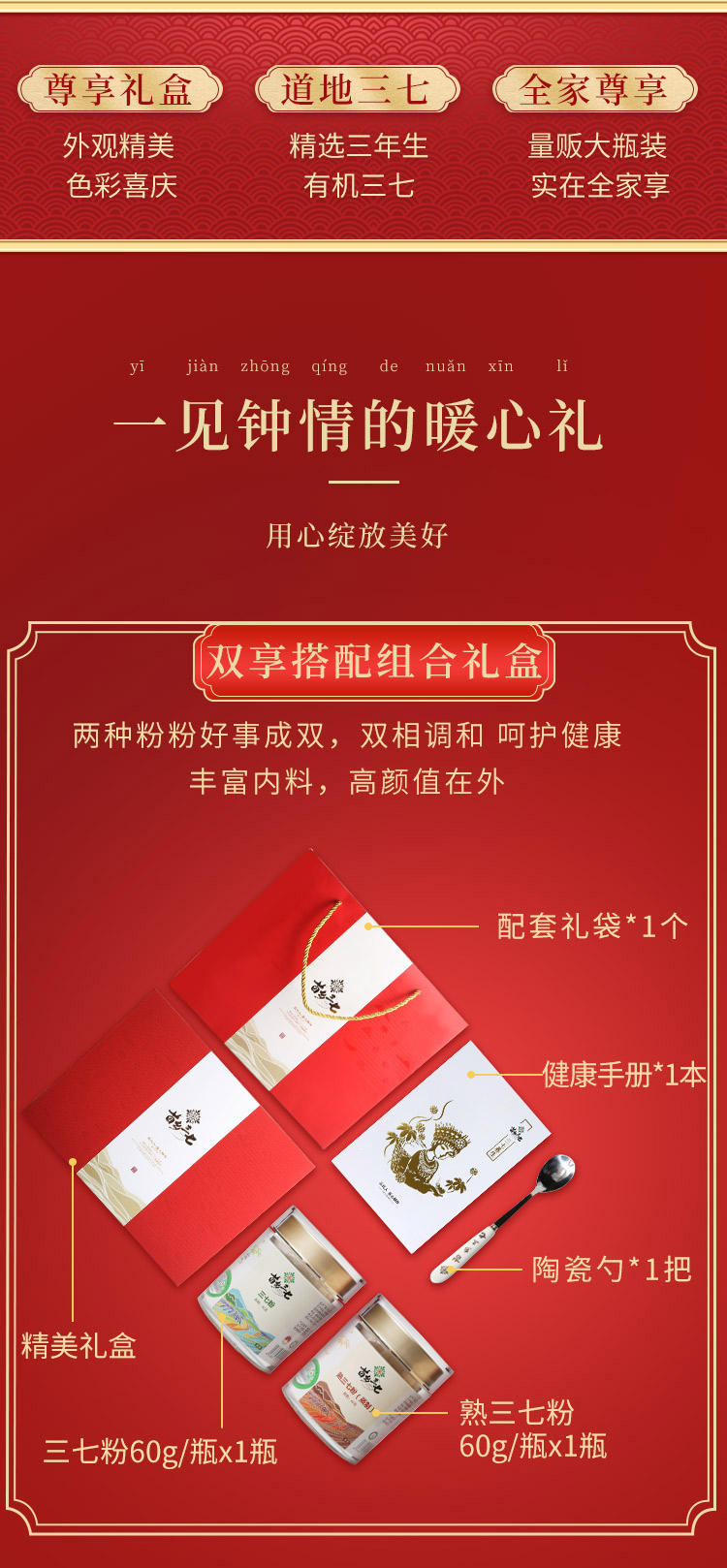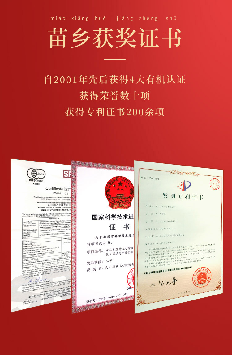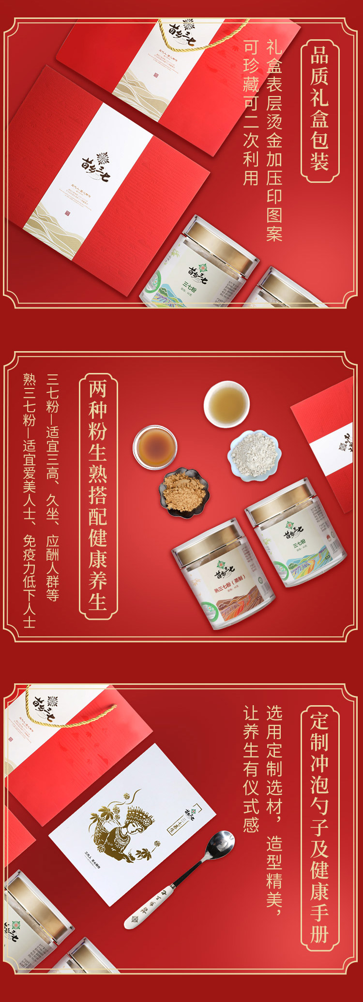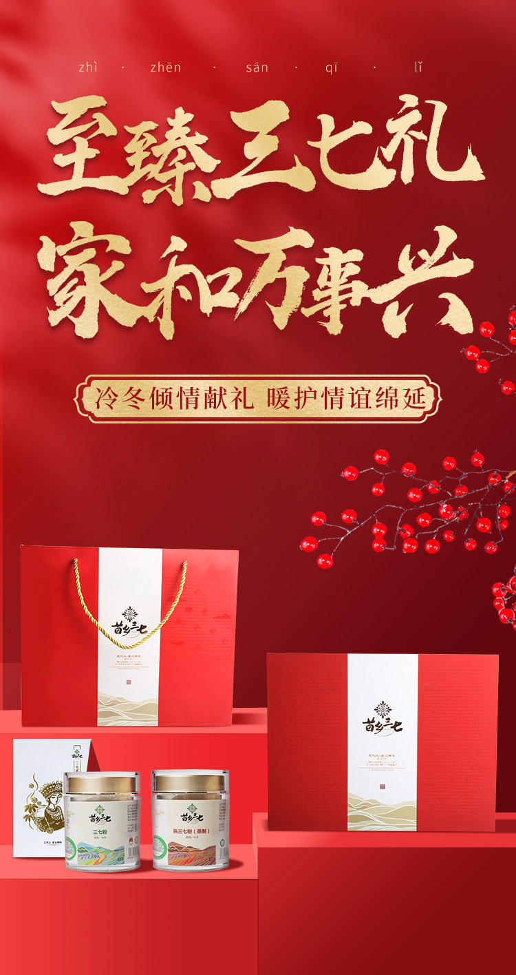 【乐汁商城专属】【滋补礼盒】苗乡三七有机安全认证高端云南文山田七头生熟三七粉120g礼盒
