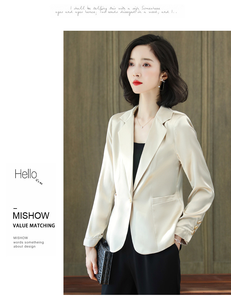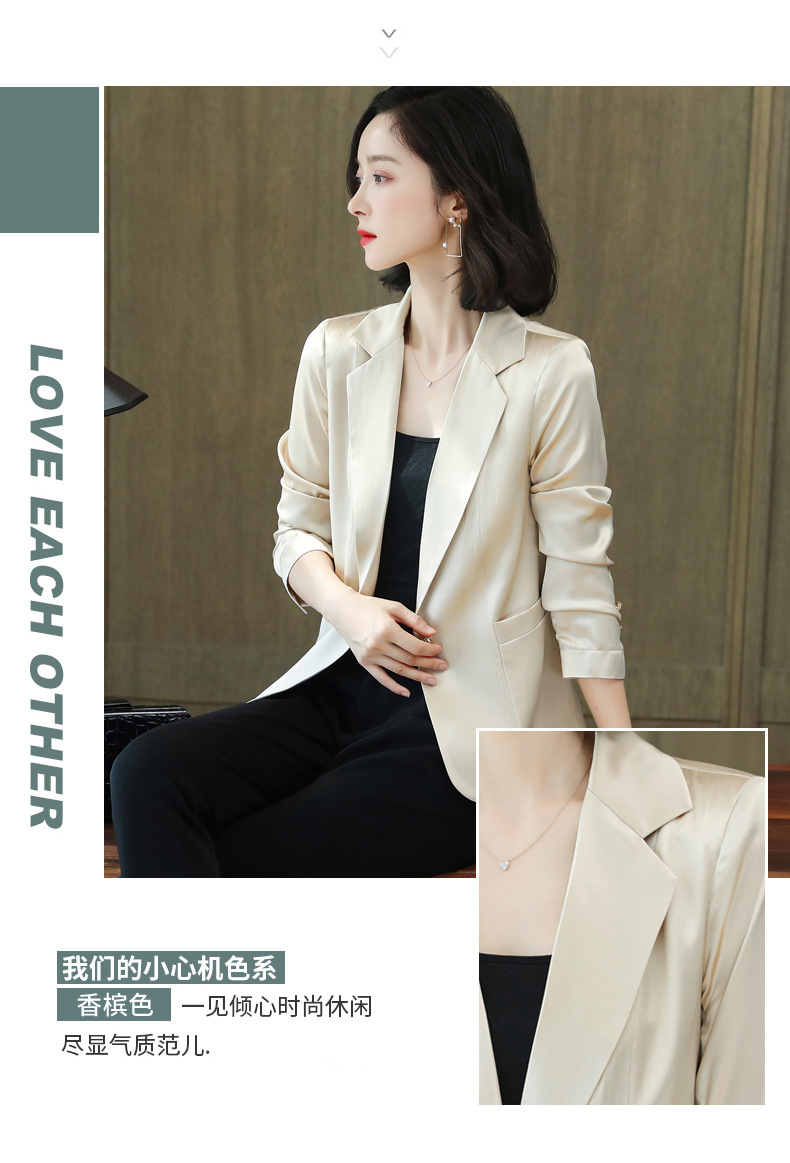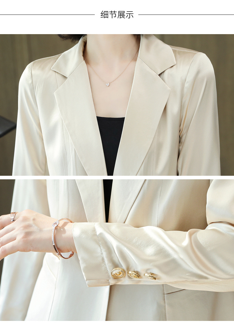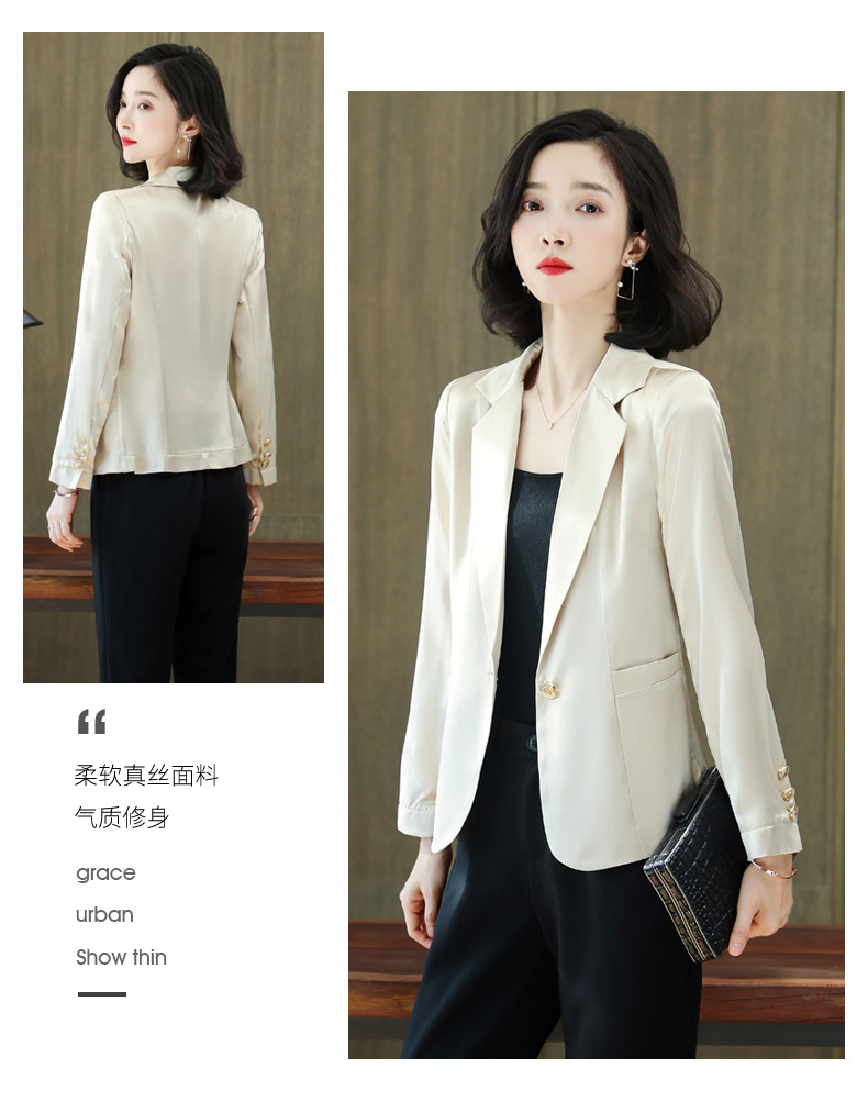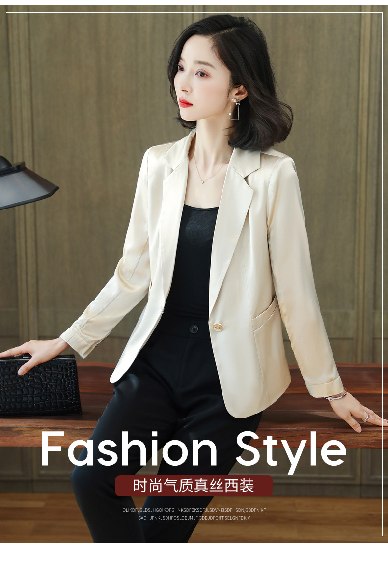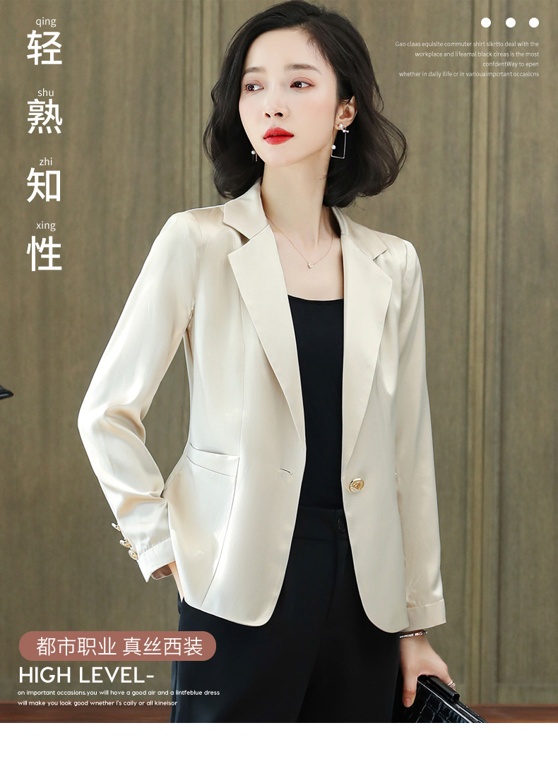 重磅真丝小西装外套女秋季2021新长袖上衣休闲气质纯色桑蚕丝西服HR-92166
