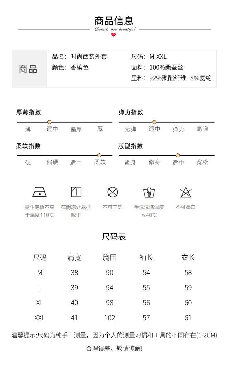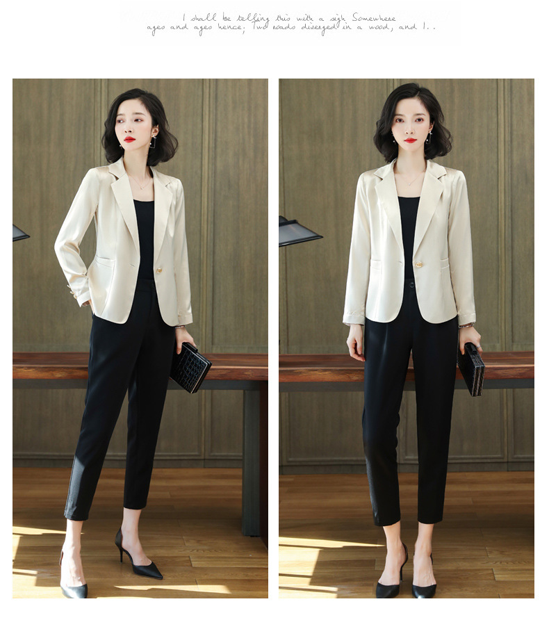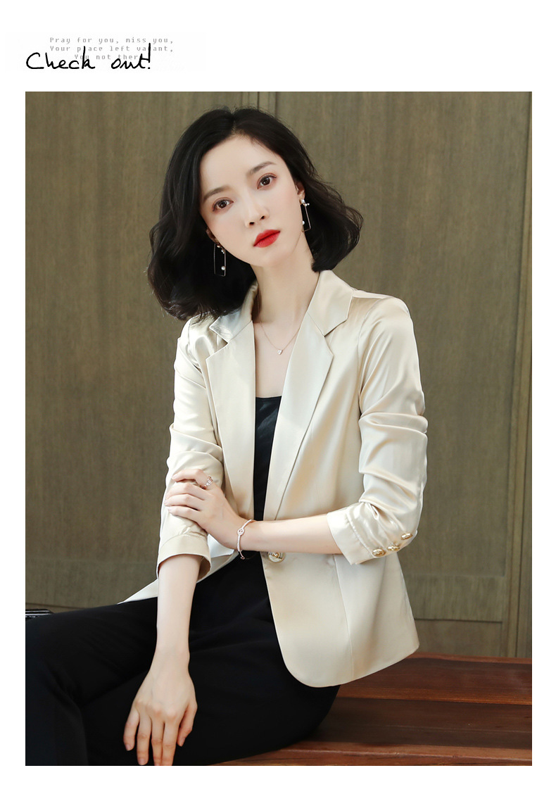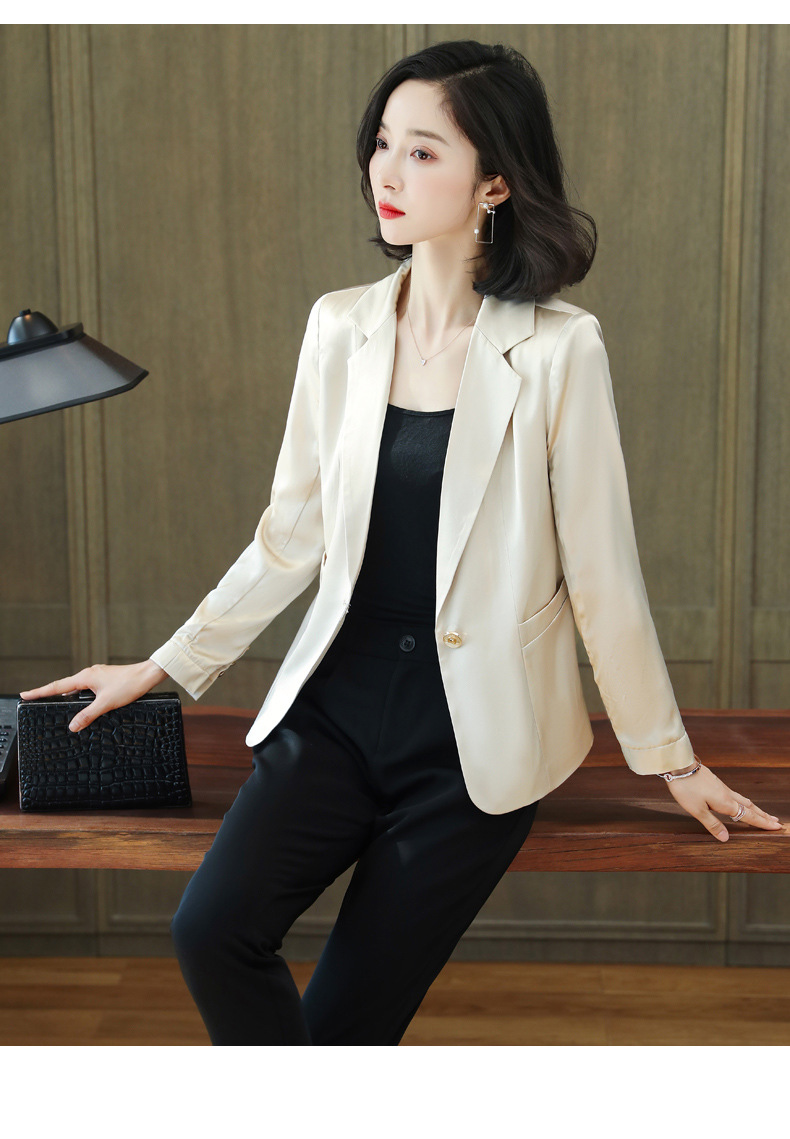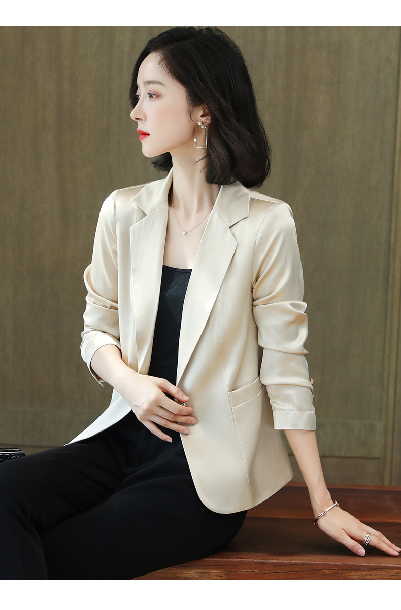 重磅真丝小西装外套女秋季2021新长袖上衣休闲气质纯色桑蚕丝西服HR-92166