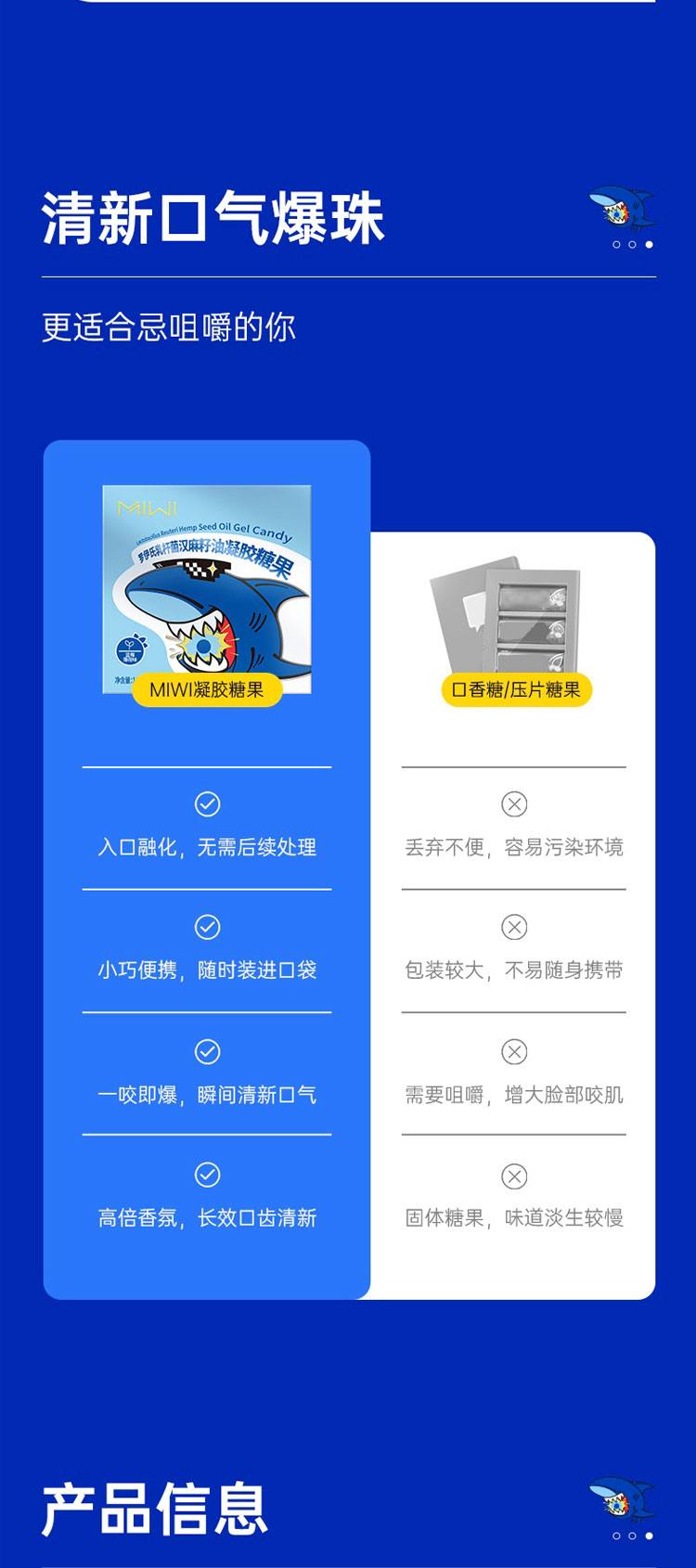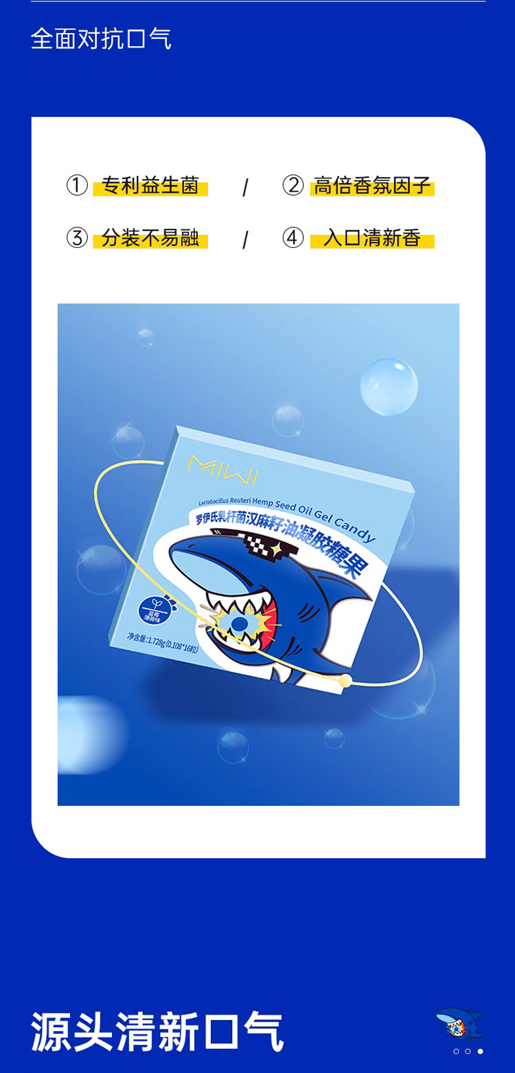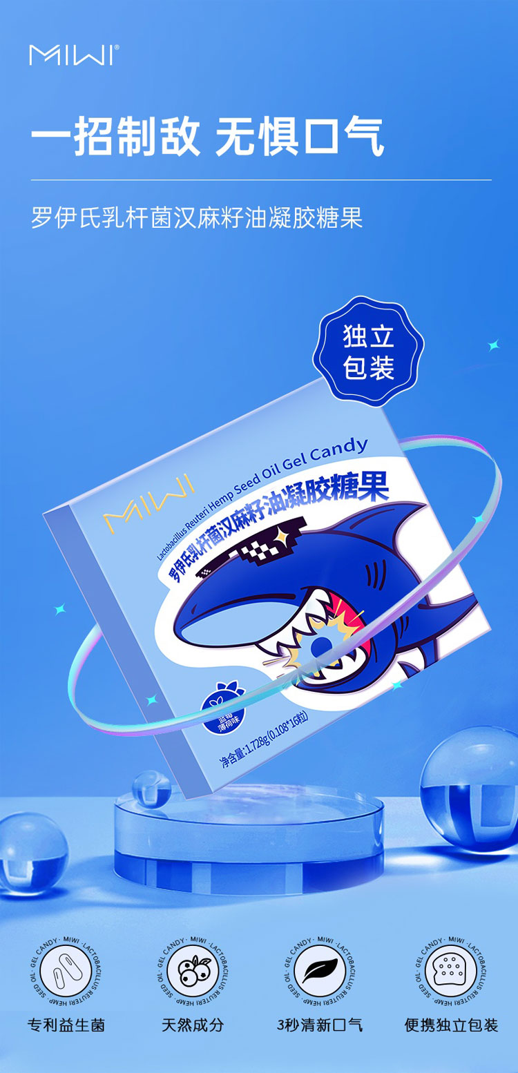 【源头清新口气】MIWI爆珠糖罗伊式乳杆菌汉麻籽油凝胶糖果3秒清新口气益生菌天然成分