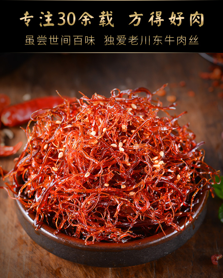 散500g 老川东牛肉干(五香味)/老川东灯影牛肉丝(五香味)