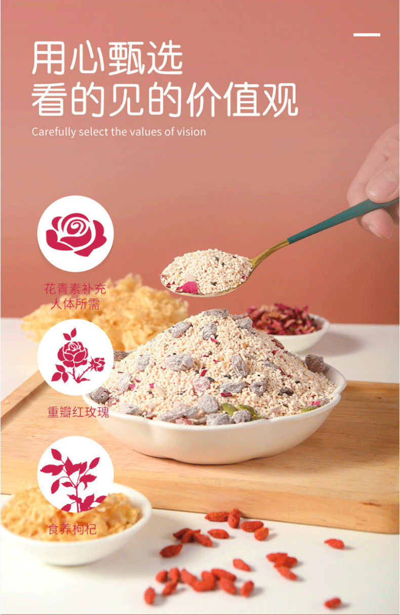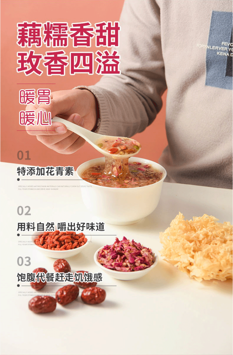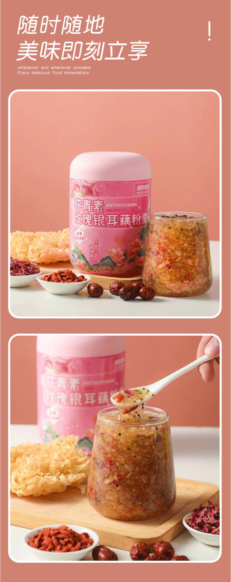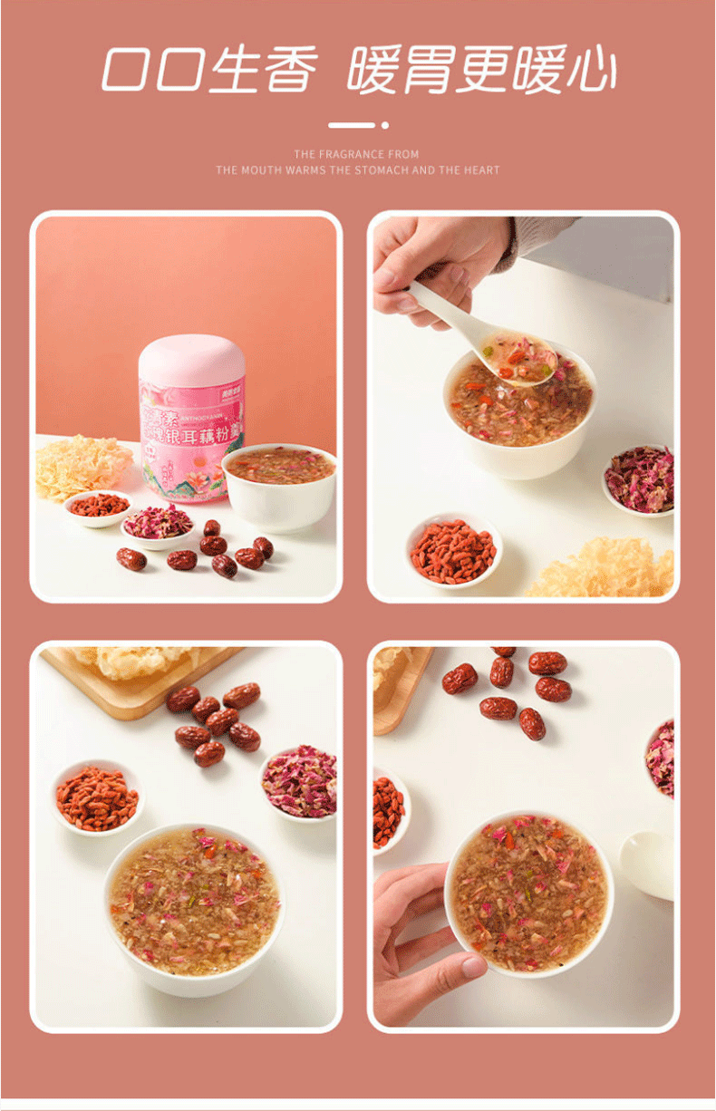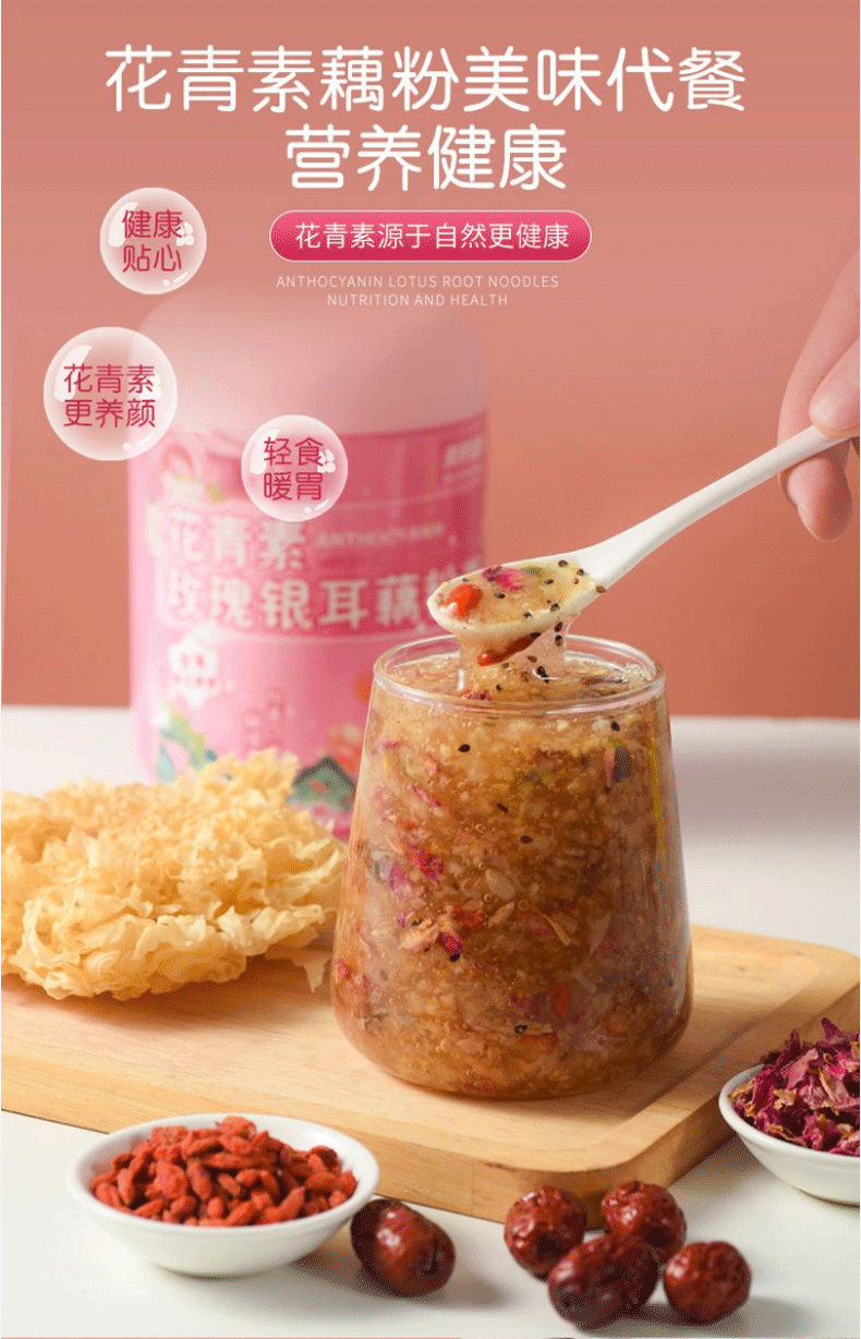 美粥食客花青素玫瑰银耳藕粉羹坚果藕粉免煮冲泡银耳羹藕粉轻食代餐