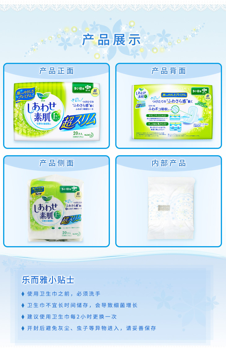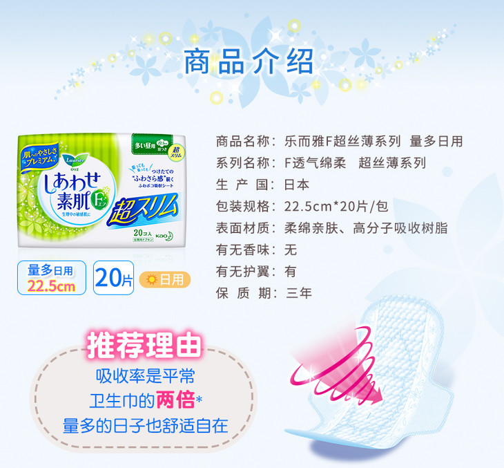 22.5cm*20片花王乐而雅F超薄日用护翼卫生巾