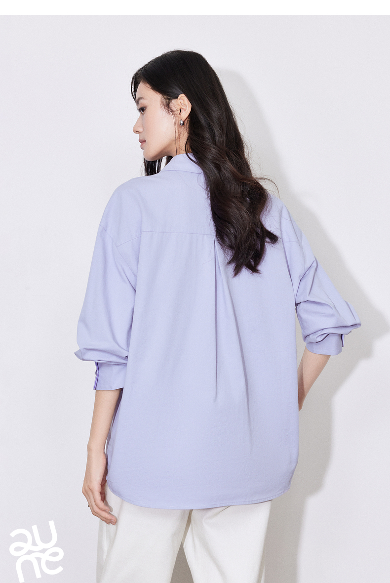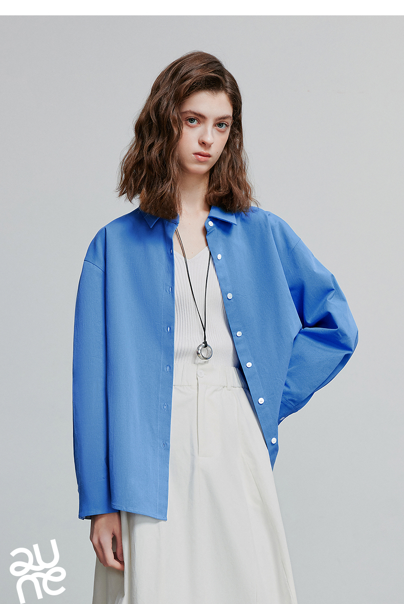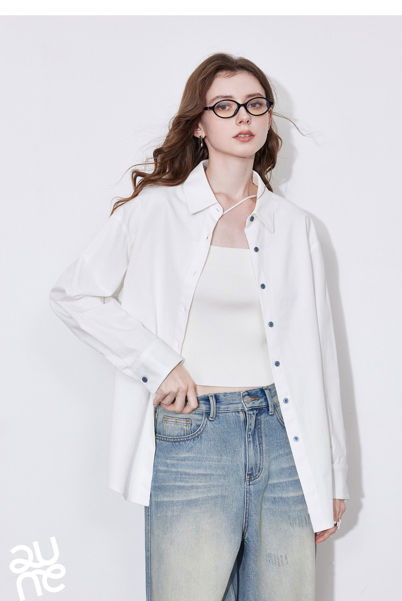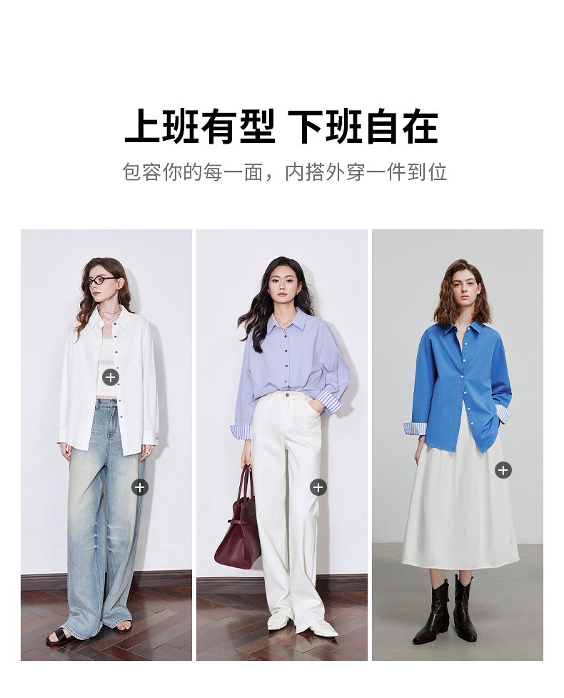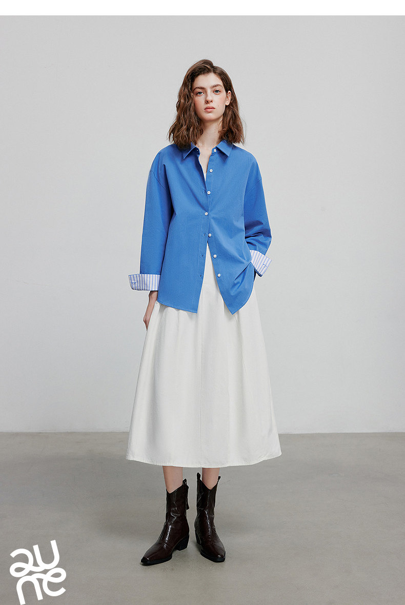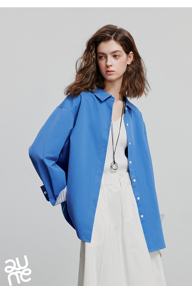 初语条纹翻袖衬衫女时装感上班通勤上衣高级感气质纯棉衬衣
