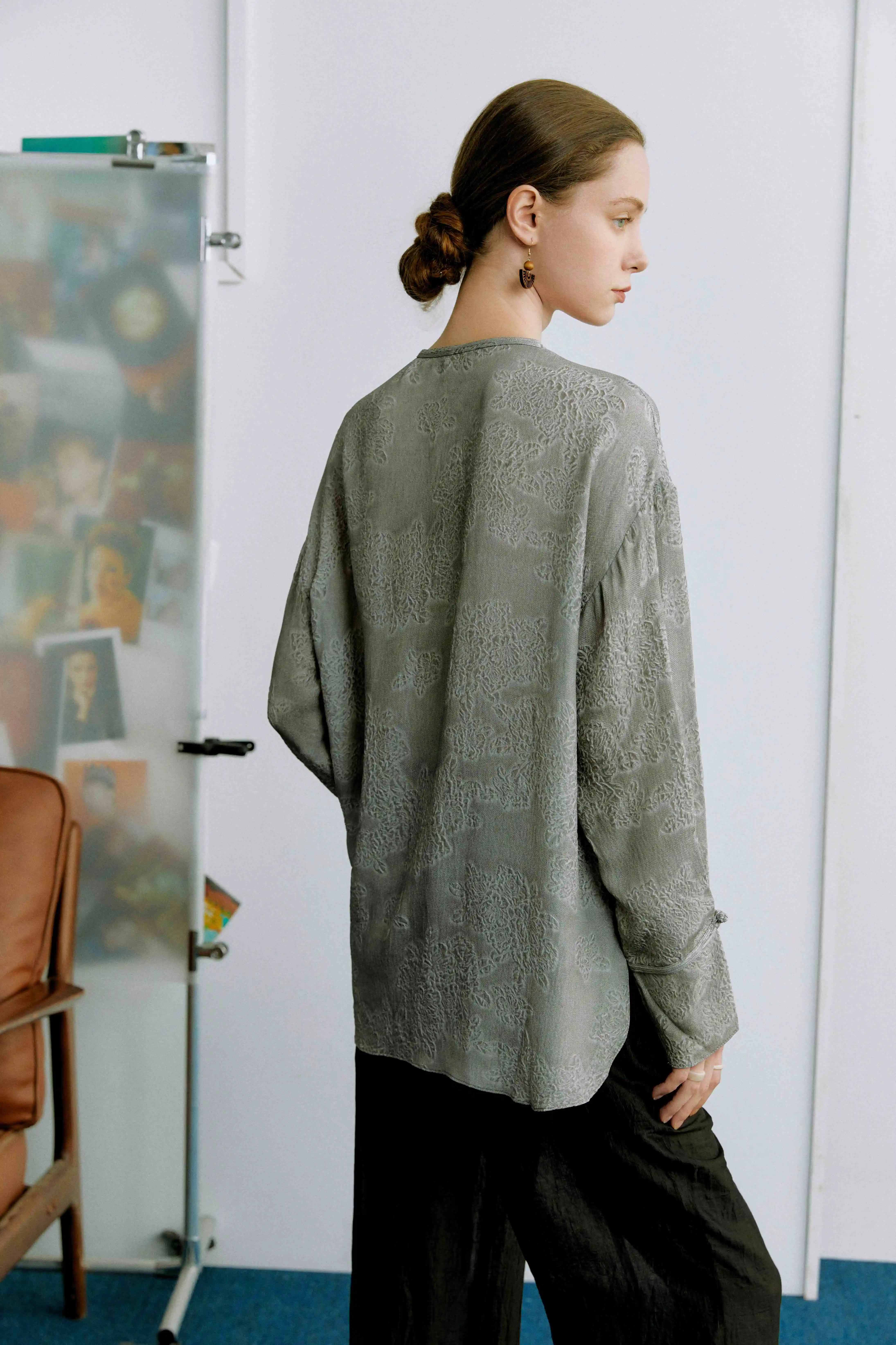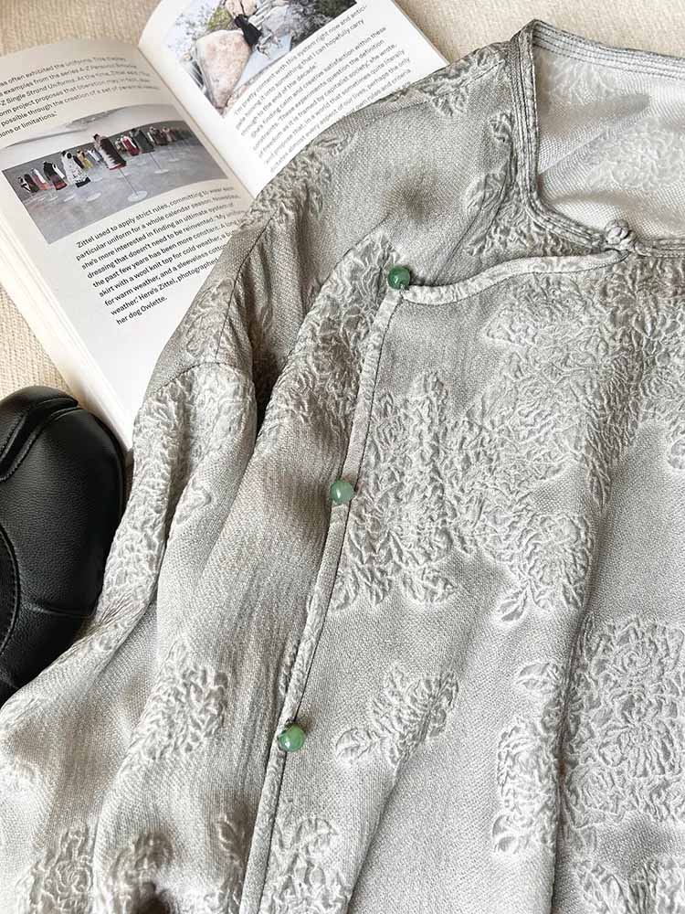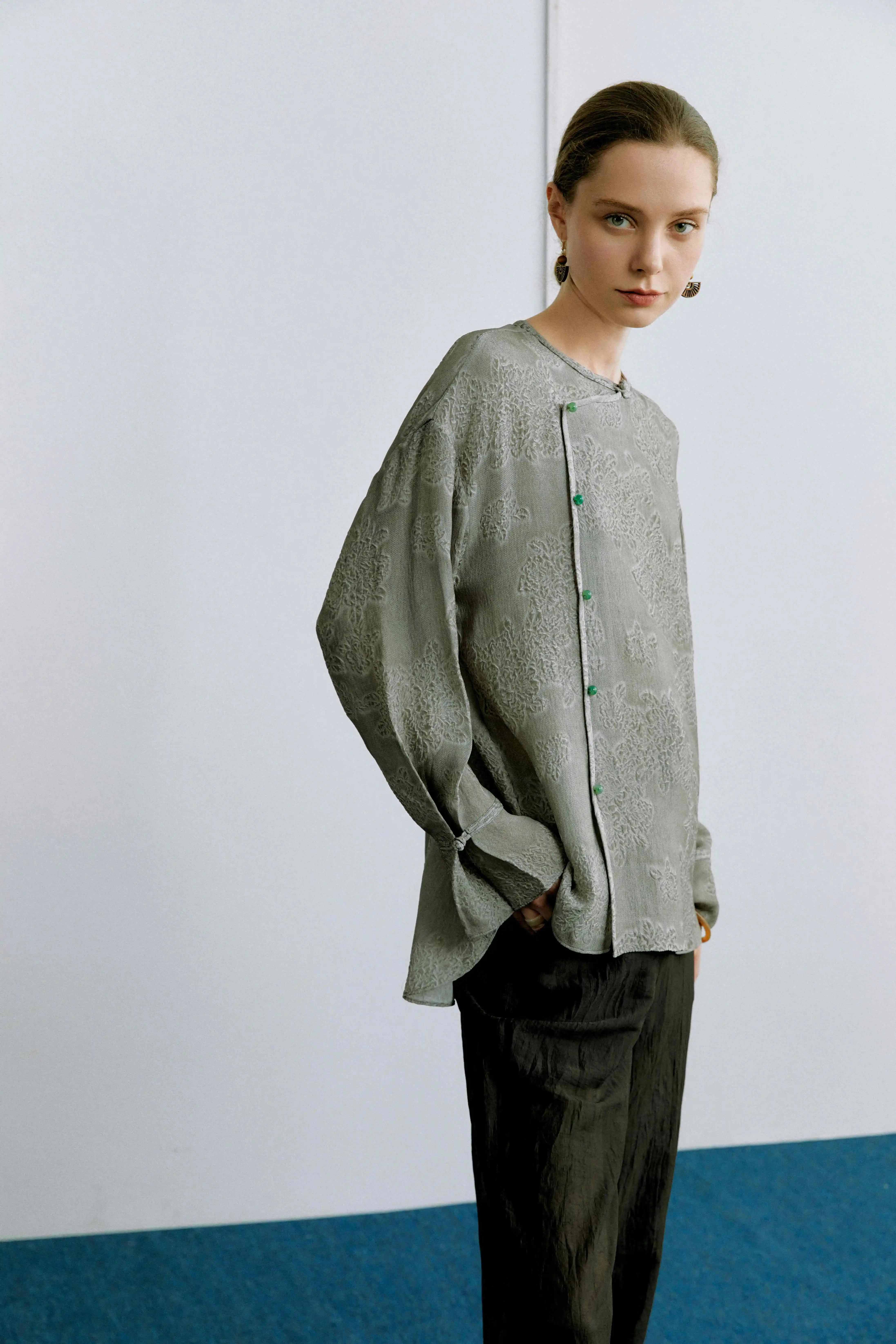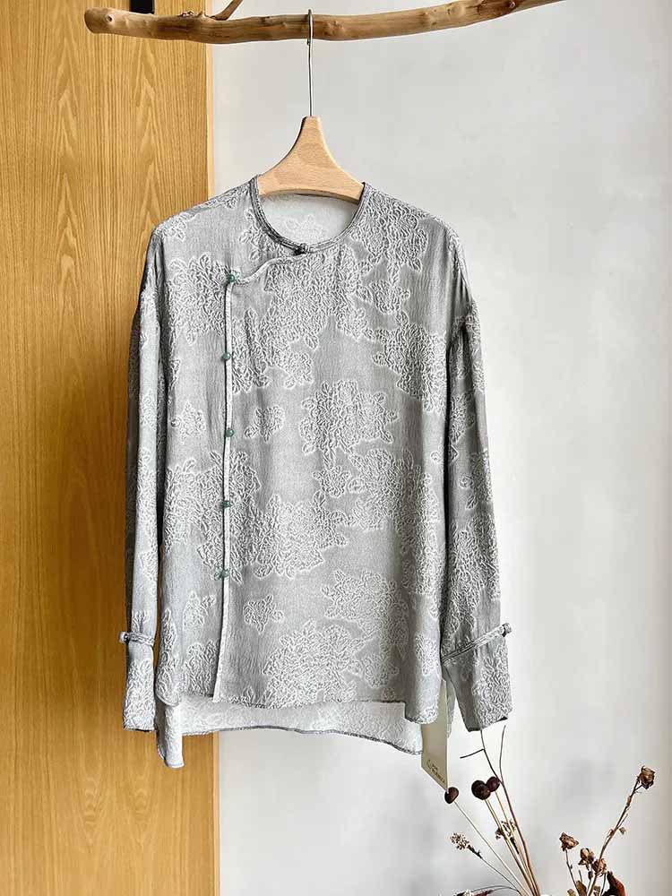 顺丰包邮洛诗琳45451春夏新款高级感新中式立体提花国风衬衫365
