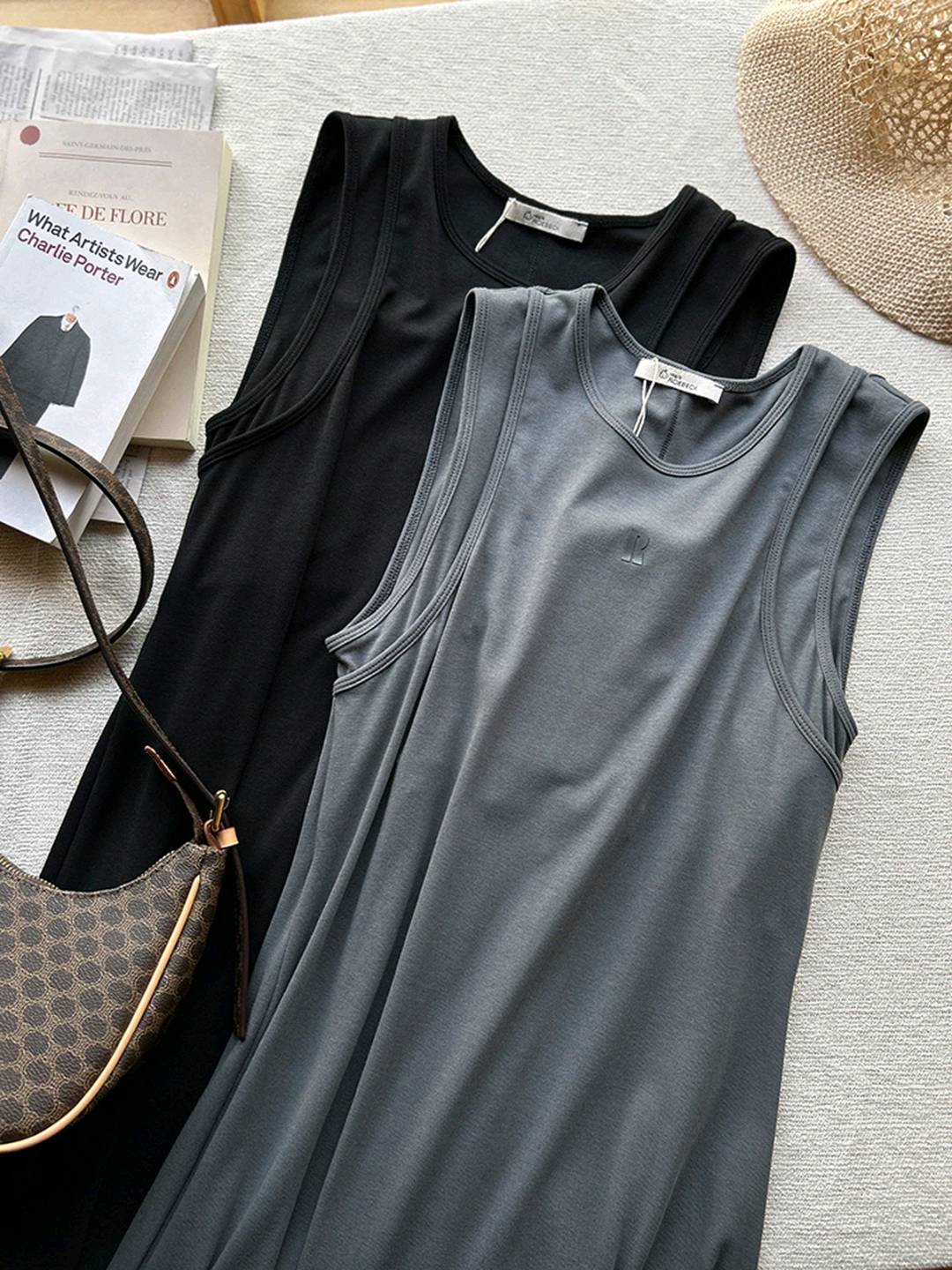 高货「无袖显瘦小字母背心连衣裙」简约才zui高级