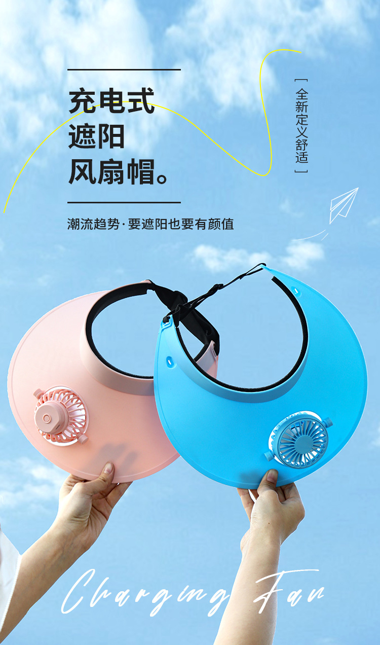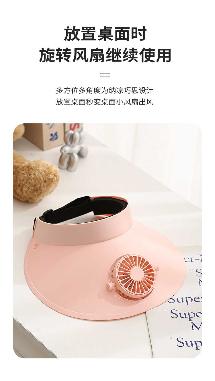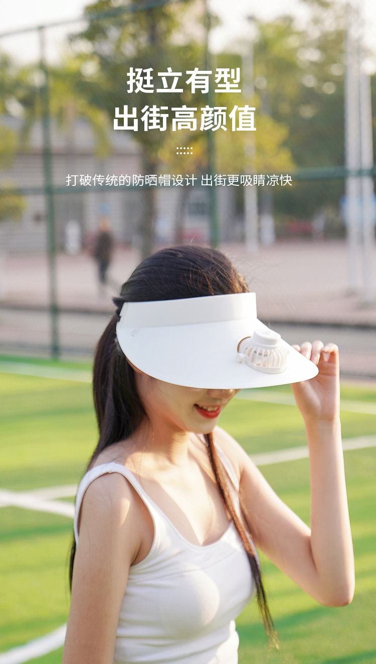 【潮流趋势,要遮阳也要有颜值】夏季户外防晒遮阳帽 风扇可调角度 三档调节锂电池 USB充电小风扇-QQ