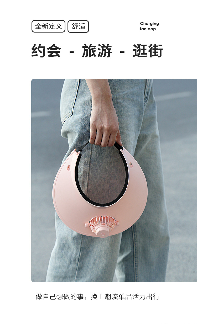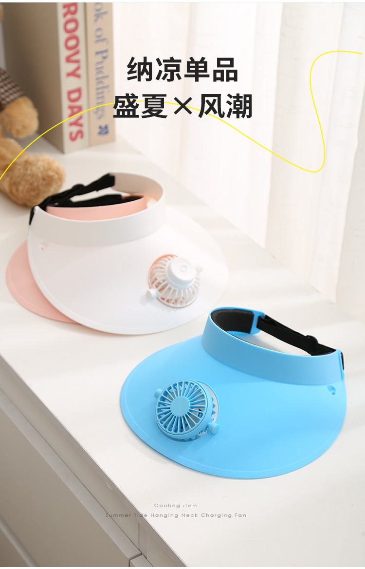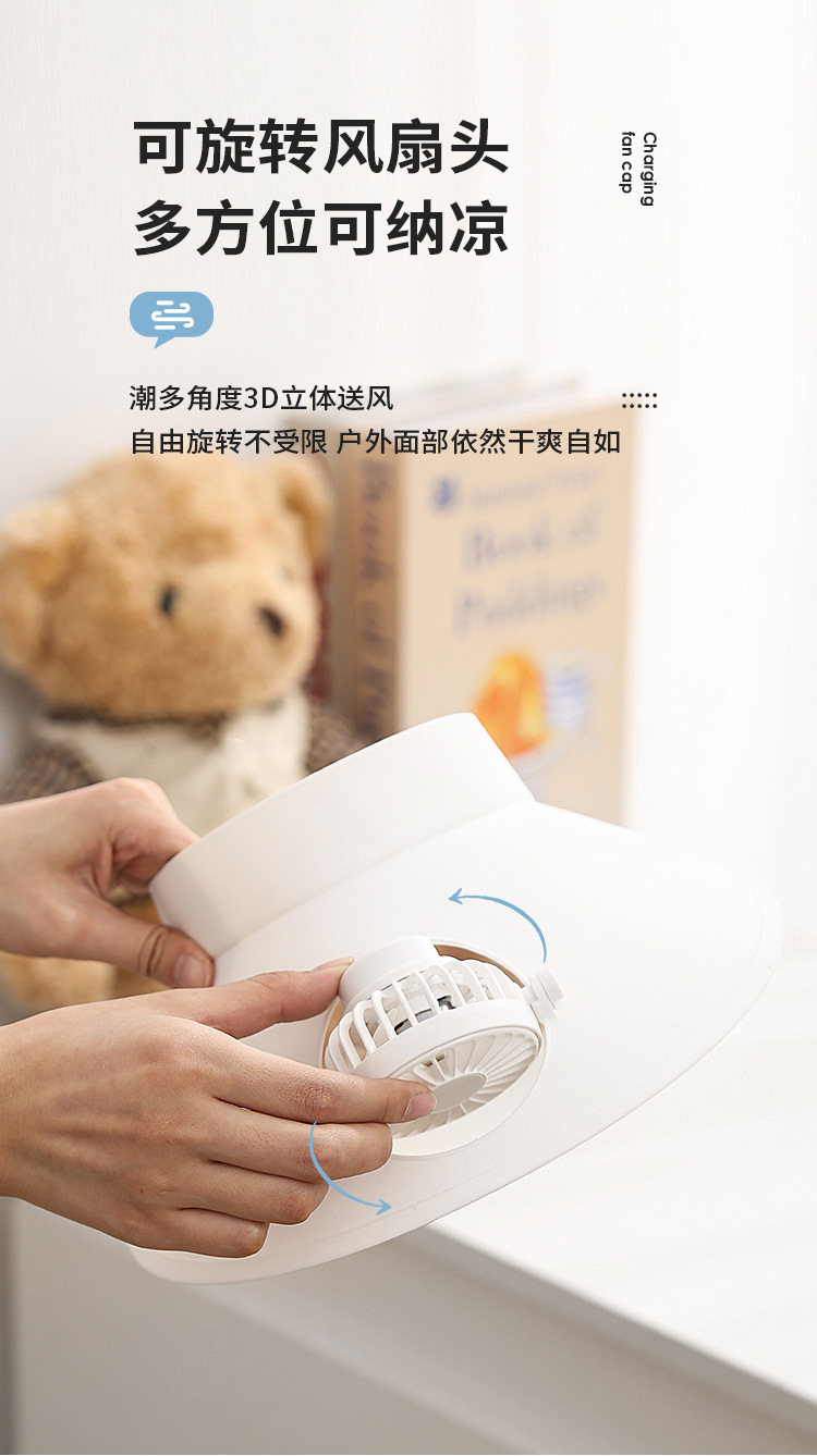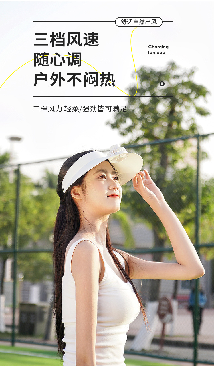 【潮流趋势,要遮阳也要有颜值】夏季户外防晒遮阳帽 风扇可调角度 三档调节锂电池 USB充电小风扇-QQ
