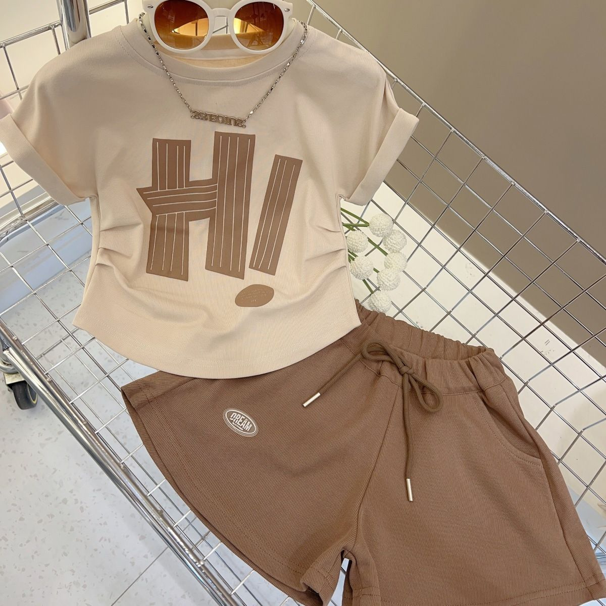 【2024新款女童休闲套装】女童夏季休闲套装中大童洋气T恤短裤两件套儿童新款运动套装-QQ