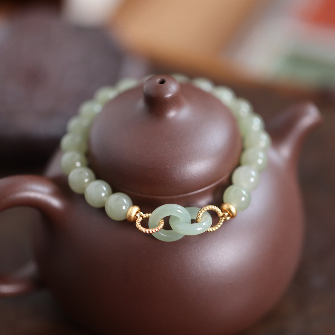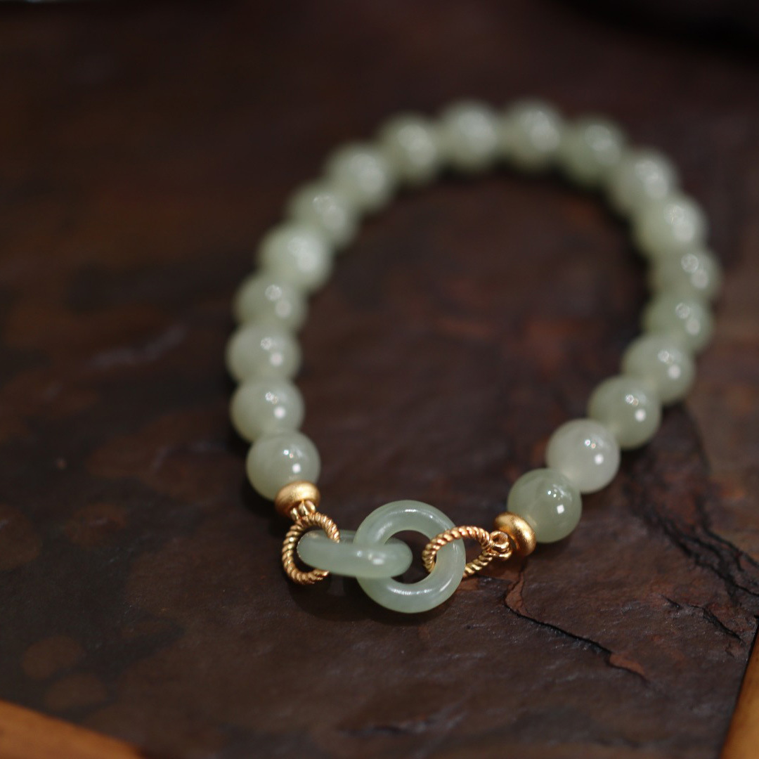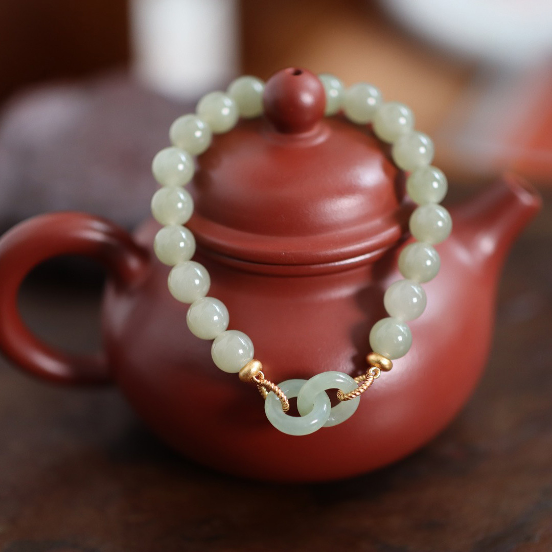 CS-16-53-02 天然8MM和田玉手链 国风环环相扣手链女复古轻奢百搭玉石手串