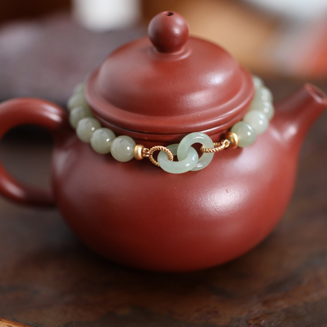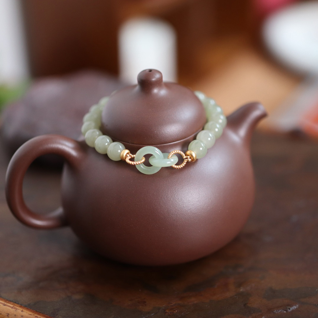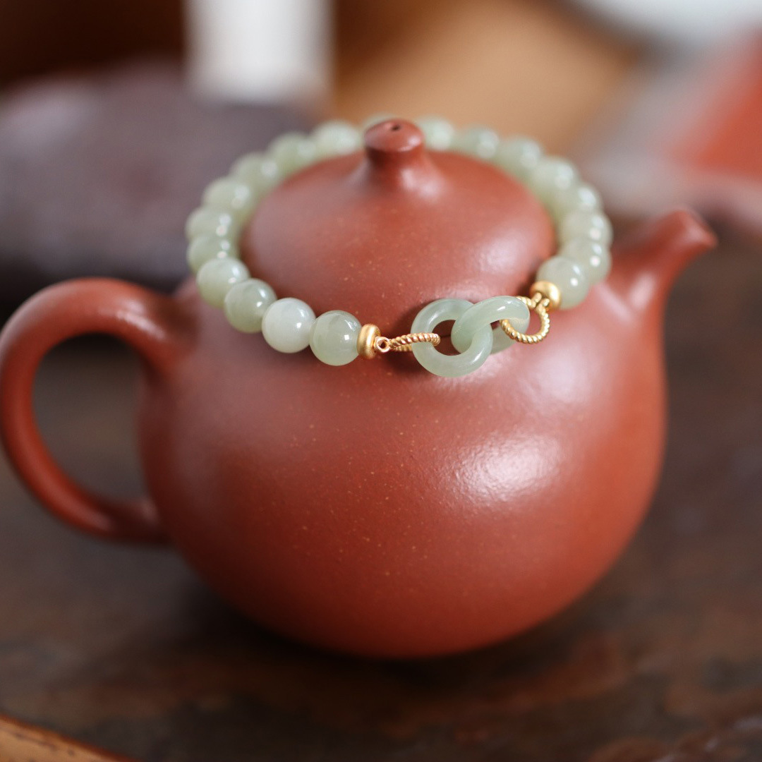 CS-16-53-02 天然8MM和田玉手链 国风环环相扣手链女复古轻奢百搭玉石手串