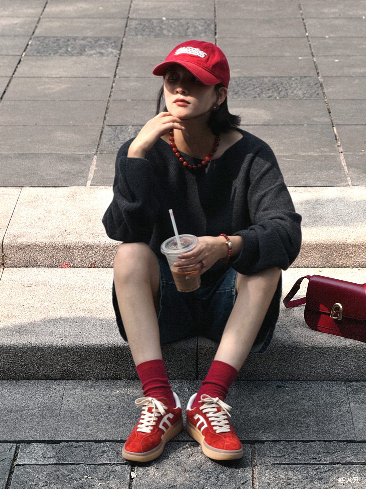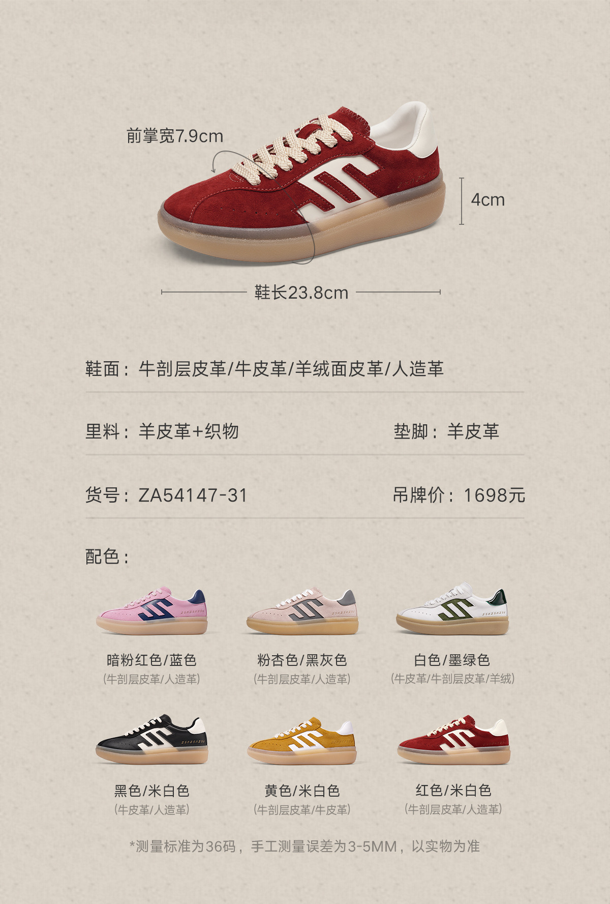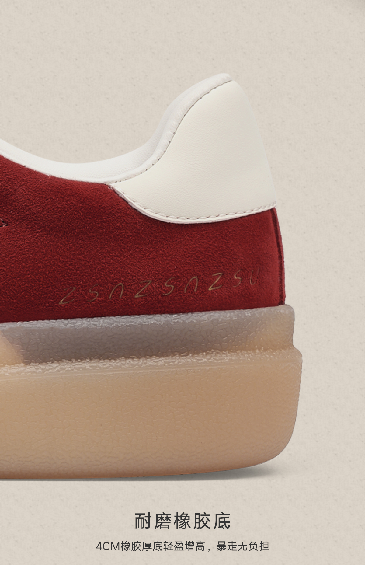 赵露思款莎莎苏24秋新款厚底安可拉红色德训鞋运动休闲板鞋马卡龙